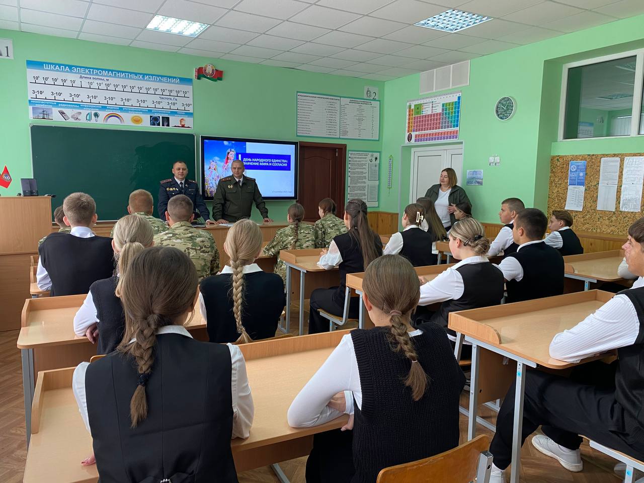 Также сегодня для школьников состоялся единый урок. С учащимися обсудили события, ставшие исторической основой государственного праздника, значение его для современной Беларуси, важность единства белорусского народа для сохранения независимости и суверенитета страны.