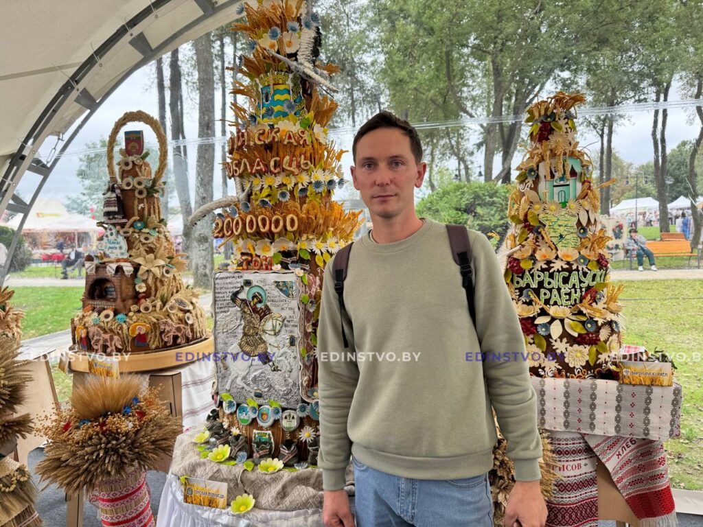 Артем рассказал журналисту «Адзінства» о том, долго ли шла работа, каков вес караваев и почему центральное место на изделии Минской области занимает образ Георгия Победоносца.