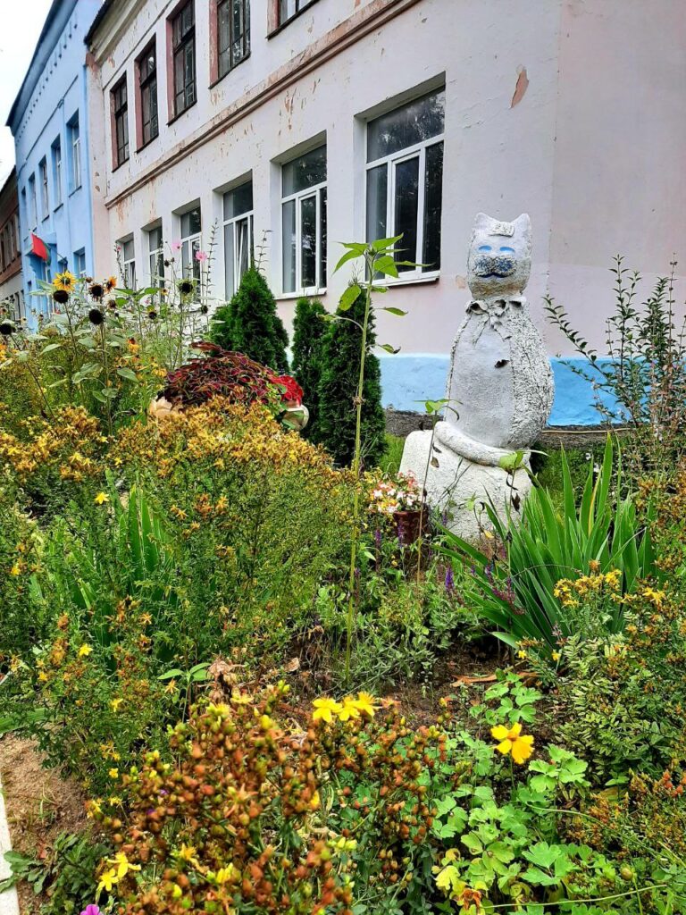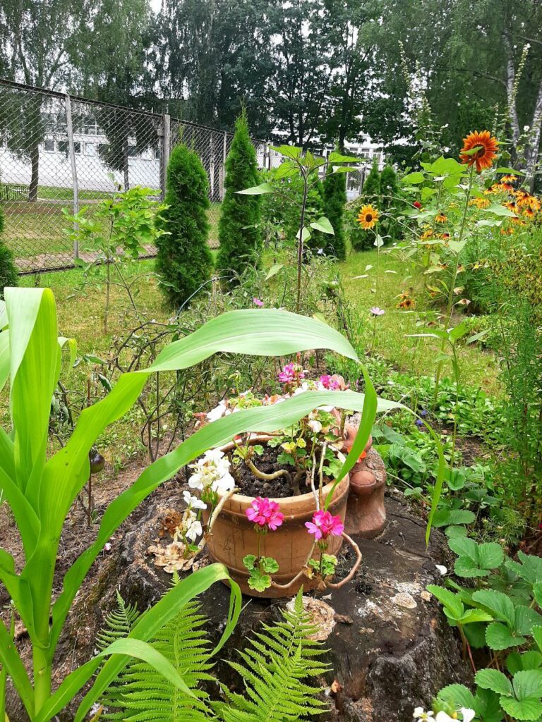 Каждый год территория центра преображается: появляются новые клумбы, оригинальные композиции из природных материалов. Проявляя неутолимую энергию и креативный подход, Елена Шемит вдохновляет коллег и учащихся на совместное творчество.