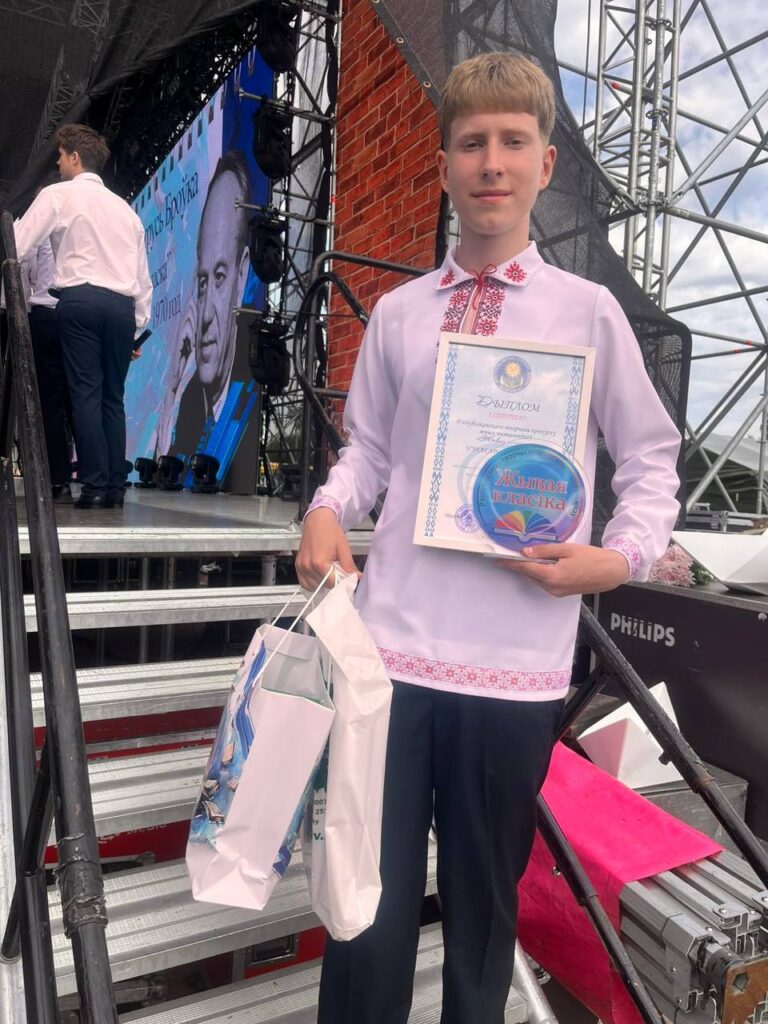 — Конкурс проходил в три этапа: региональный, областной, а финал состоялся 26 августа в Минске. Читал произведение современного автора Казимира Камейши — отрывок с поэмы «Галоўная вярста». Произведение достаточно сложное, глубокое, пронизано глубокой любовью к родной земле, человеческими переживаниями и жизненными испытаниями. Понять и передать эти переживания помогала мой педагог Людмила Михайловна. За что я ей очень благодарен, — рассказал молодой человек. — Волнения перед выступлением не было. Сказывается театральная подготовка, а также неоднократное участие в различных конкурсах. В будущем планирую связать свою жизнь с театром.