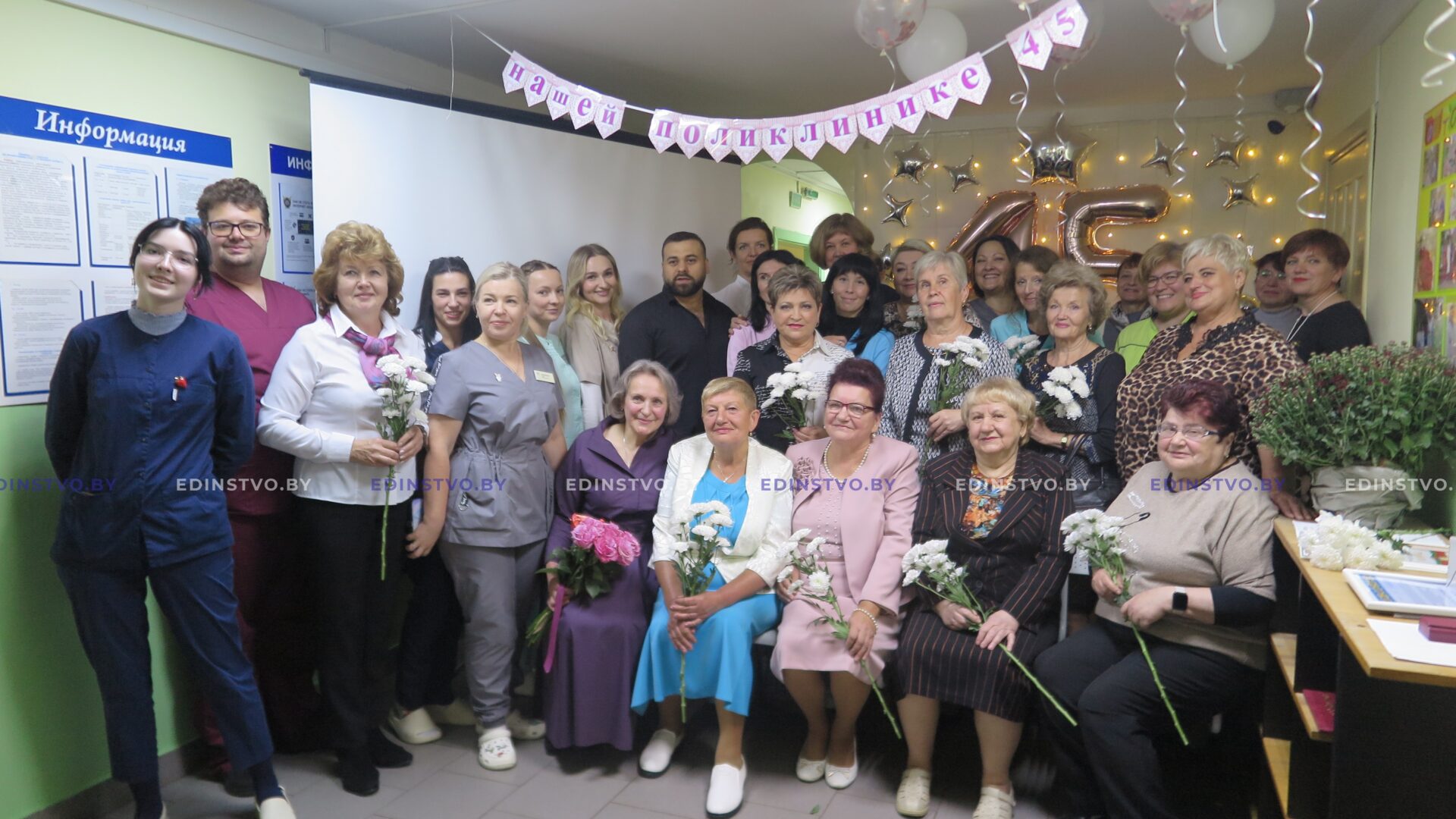 В обеденный перерыв в празднично украшенном фойе детской стоматологической поликлиники собрались как члены трудового коллектива, так и его ветераны, чтобы вместе отметить значимую дату.