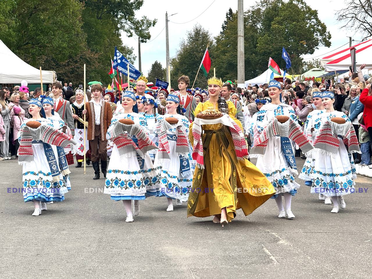 Участники шествия – представители ОАО «Борисовский агросервис Бел» (директор Вадим Демидчик). В этом году валовый сбор зерна составил более 3,4 тысяч тонн зерна с урожайностью 29,9 центнера с гектара.