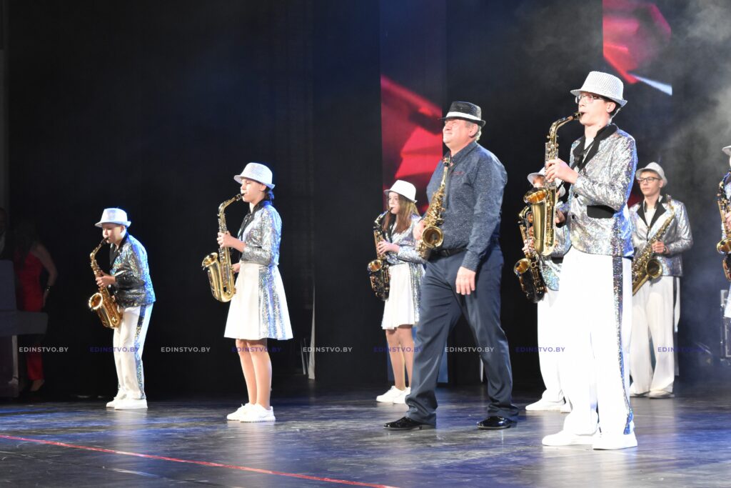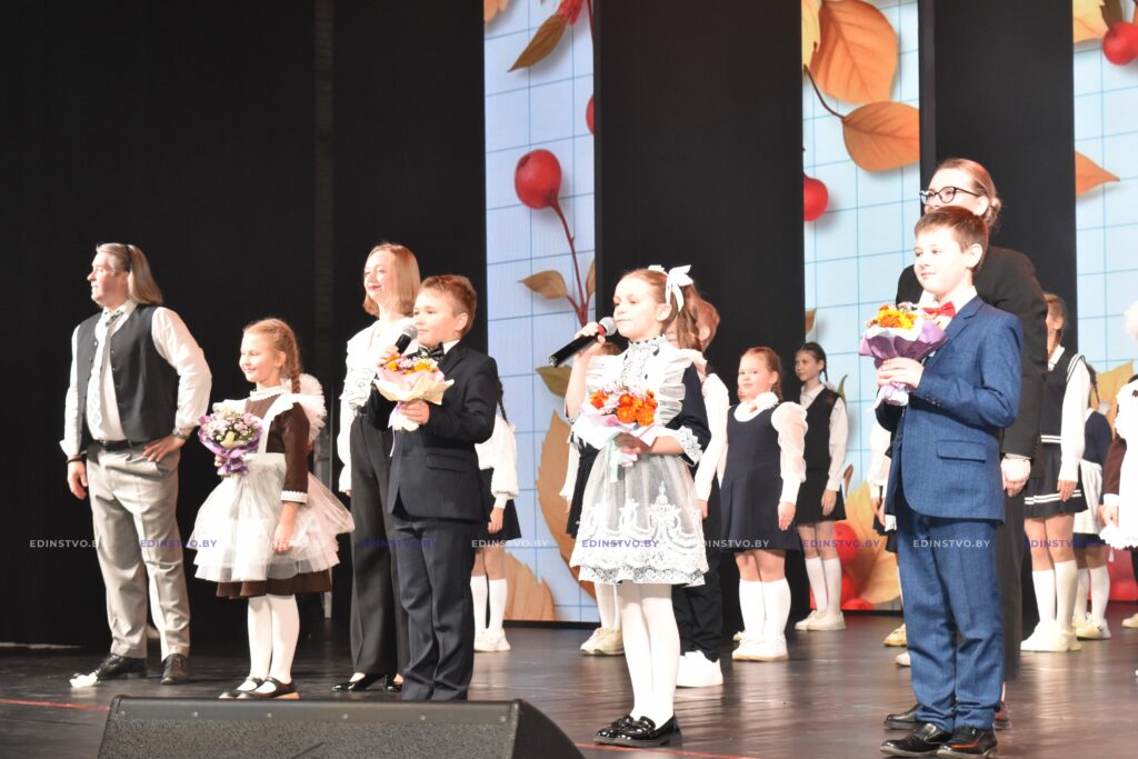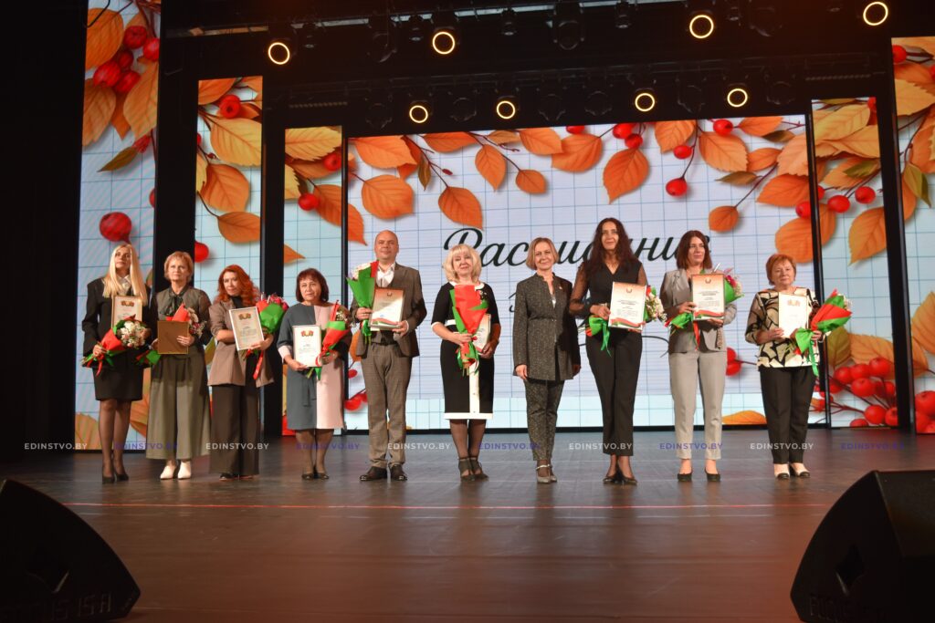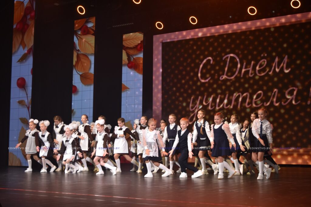 Свои творческие номера педагогам дарили артисты Борисовщины. А в заключение праздника на сцену внесли цветы педагогам от председателя Борисовского райисполкома.