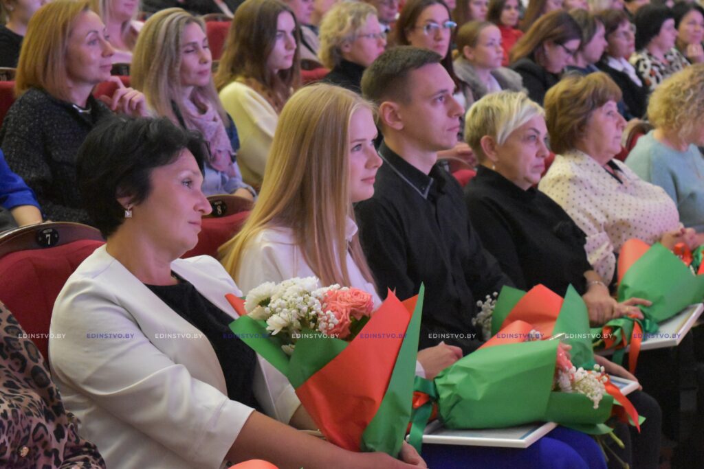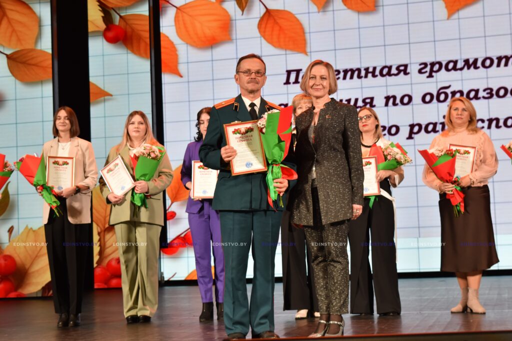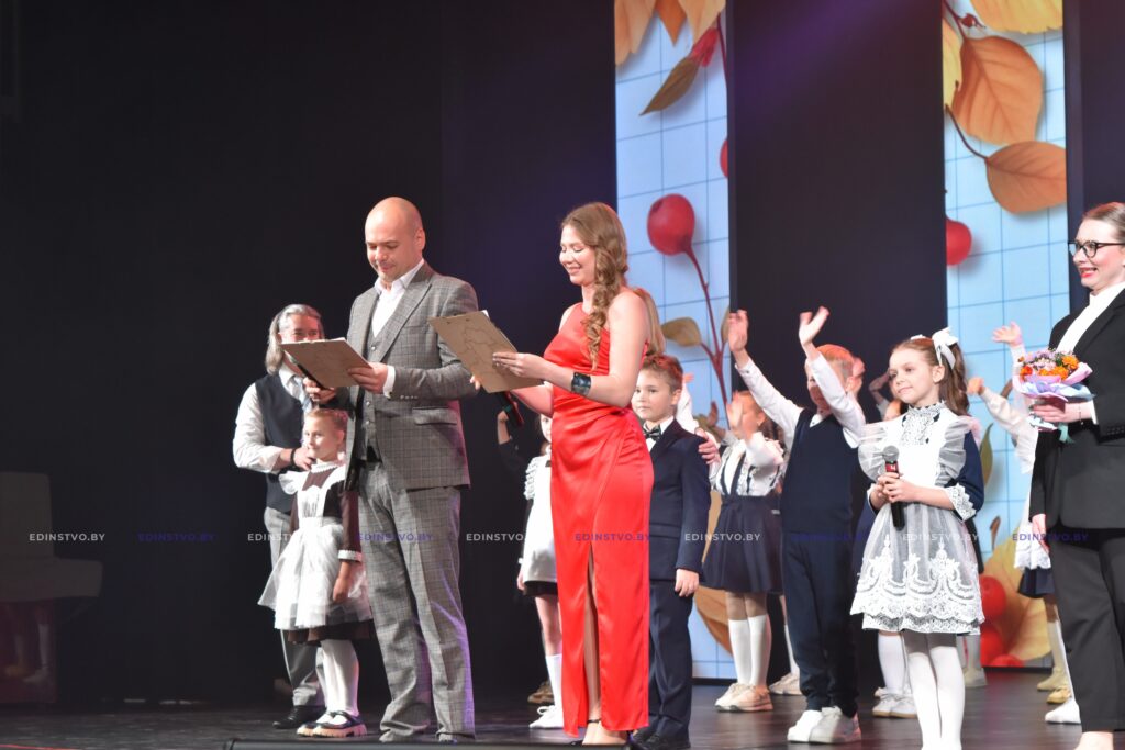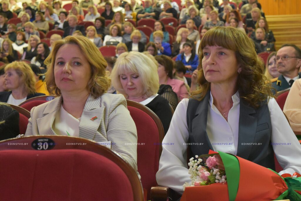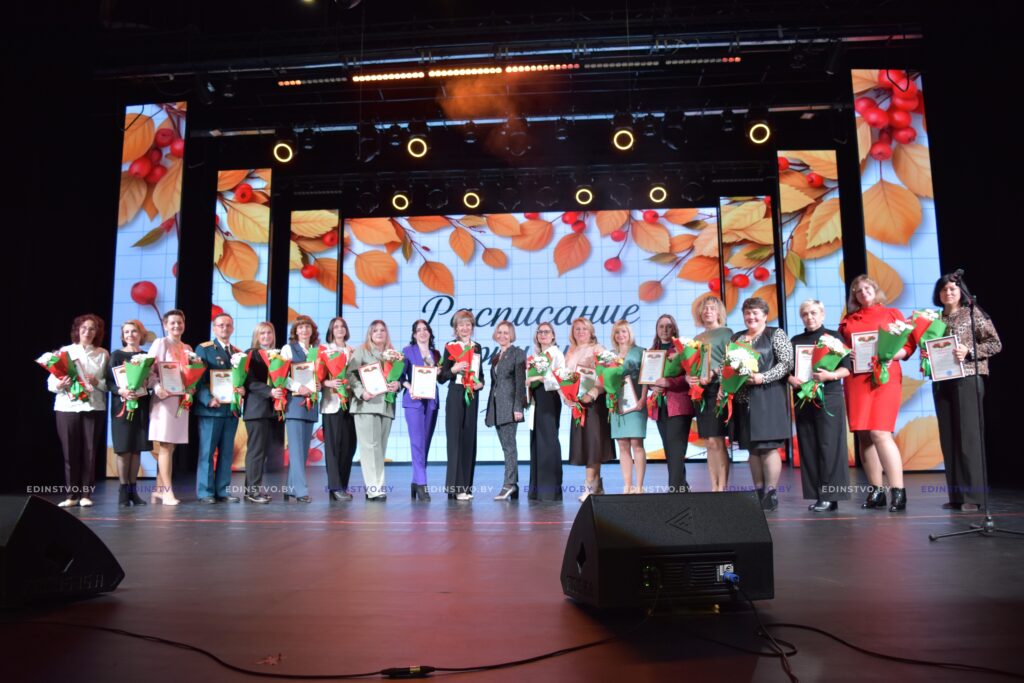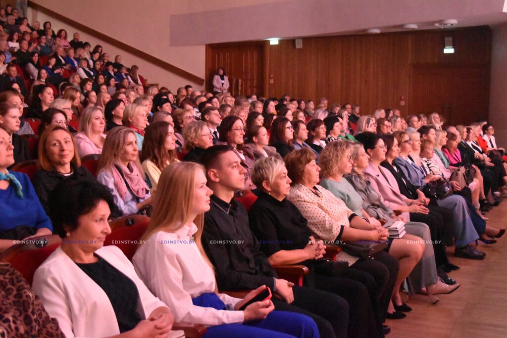На сцене Лилия Эдуардовна вручила нагрудный знак Министерства образования Республики Беларусь «Отличник образования» за высокий профессионализм, многолетнюю добросовестную работу, плодотворную управленческую деятельность по развитию системы образования Борисовского района, координацию работы с одаренными и высокомотивированными учениками в учреждениях образования Борисовского района на высоком организационно-содержательном уровне бы вручен начальнику отдела дошкольного и общего среднего образования управления по образованию Борисовского райисполкома Светлане Снежко.