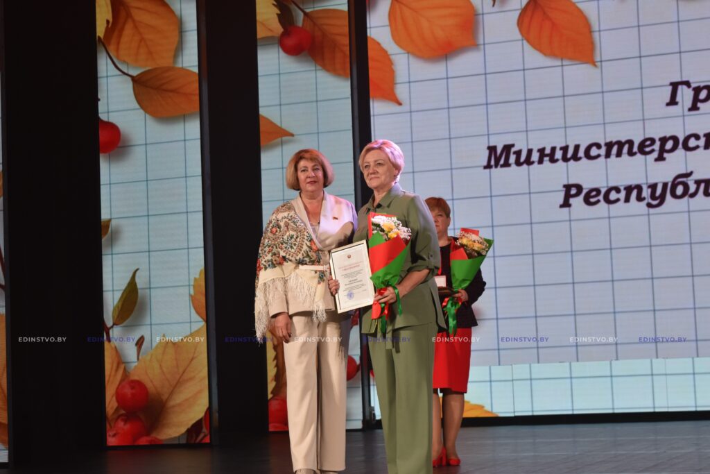 Грамоты Министерства образования Республики Беларусь за высокий профессионализм, многолетнюю добросовестную работу, достигнутые успехи в организации образовательного процесса вручены заместителю директора по учебной работе СШ №16 Валентине Качановой, учителю музыки Лошницкой гимназии Ирине Митрофаненковой.