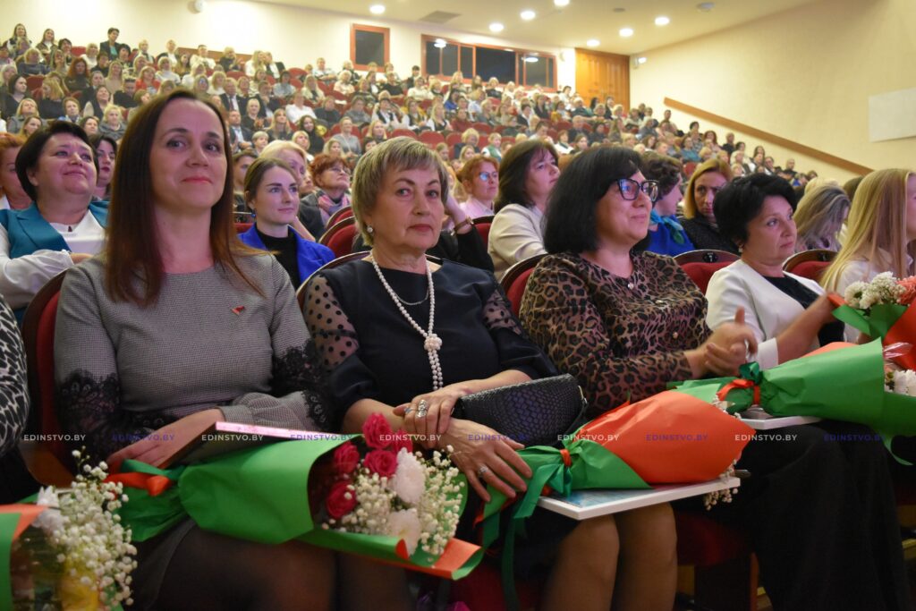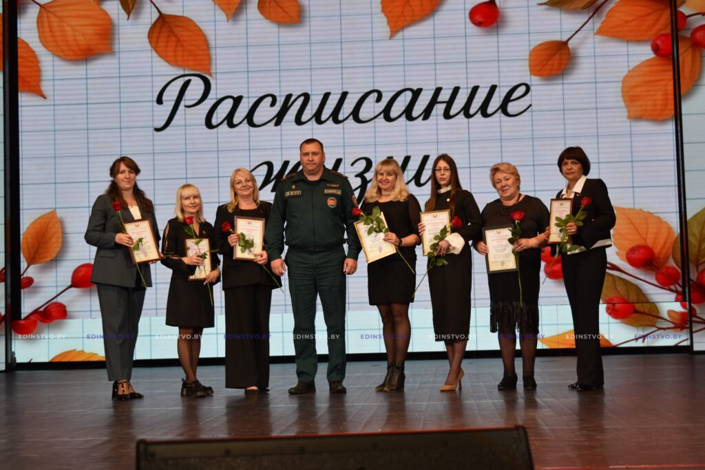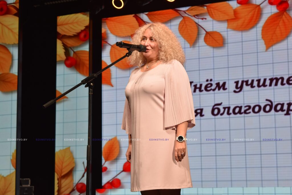 — Учитель, педагог… Это тот человека, который берет в свою руку маленькую ладошку воспитанника детского сада. И тот человек, который пожимает уверенную руку выпускника школы, колледжа, вуза. Это все вы, дорогие коллеги, — сказала начальник управления по образованию Борисовского райисполкома Ирина Садовская. — Те, кто создает будущее нашей страны. И за это вся страна говорит вам спасибо. И не случайно наш Президент говорит: «Учитель — это мой человек». И это доверие вы оправдываете. Коллектив педагогов Борисовщины — это команда энтузиастов, профессионалов своего дела, людей, на которых всегда можно положиться. Вам по плечу все задачи, которые ставит перед нами государство. И то количество наград, которые в этом году получили педагоги Борисовщины ко Дню учителя, это подтверждает. Уважаемые коллеги, поздравляю вас с праздником, желаю здоровья, счастья, профессионального развития, творческих и креативных идей. С Днем учителя!