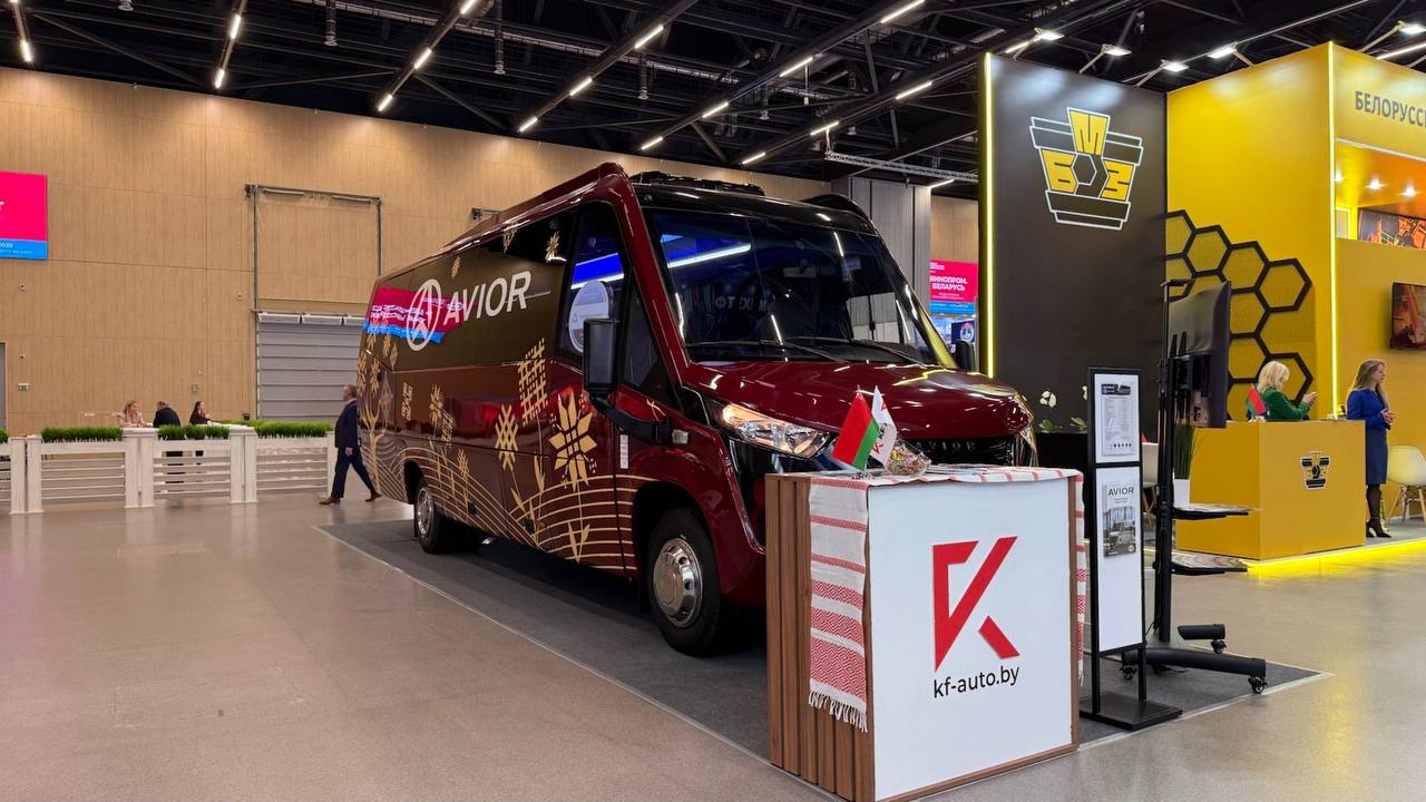 ООО «КФ-АВТО» из Борисова также приняло участие в выставке, представив новые модели автобусов AVIOR. Особым вниманием для посетителей стала новинка — бизнес-шаттл цвета «бордовый металлик». Это бизнес-версия автобуса с переговорной зоной.
