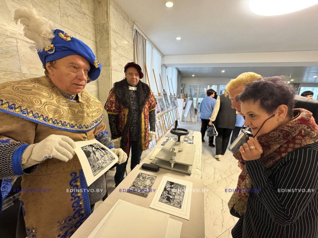 – Сегодня мы показываем мастер-класс детской печатной графики, которой занимаются в нашей школе, – рассказал директор детской художественной школы им. Аникейчика г. Борисова Степан Климчук. – Причем мы применили новую технологию (сухая игла на пластике) впервые. Раньше сухую иглу применяли только на металле. Эта техника идет со средних веков. Мы применили новый материал.