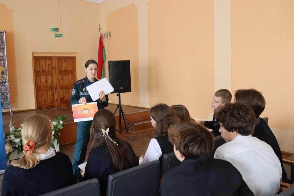 В рамках республиканской информационно-пропагандисткой кампании «Молодежь за безопасность» в средней школе №13 мальчишки и девчонки встретились с работниками Борисовского горрайотдела по ЧС.