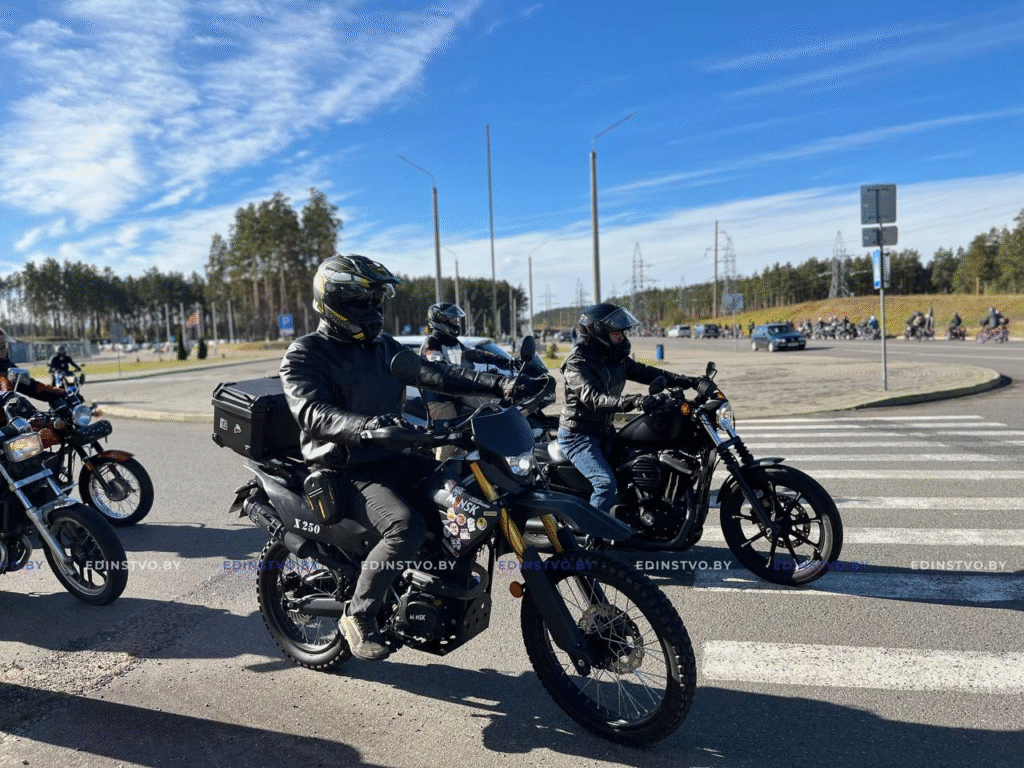 Традиционно встреча началась около «Борисов-Арены», где байкеры построили колонну и отправились в эффектный мотопробег по улицам города. Гул моторов, блеск хрома и десятки мотоциклов разных моделей – по-настоящему впечатляющее зрелище, которое привлекло внимание жителей и гостей города.
