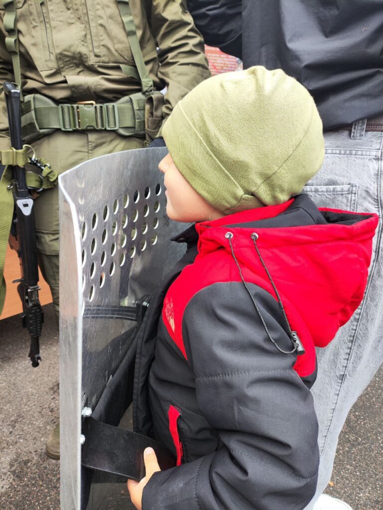 Можно было облачиться в шлем и бронежилет, что являются частью экипировки силовиков, взять в руки щит и попытаться присесть несколько раз. Другие же участвовали в спортивных интерактивах – среди присутствовавших проводилось соревнование по подтягиваниям, отжиманиям на брусьях и броскам баскетбольного мяча в кольцо. Для самых метких на территории был размещен тир. Туда была самая длинная очередь.