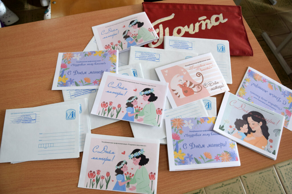 Профсоюзный комитет учащихся подготовил конверты и поздравительные открытки для мам.