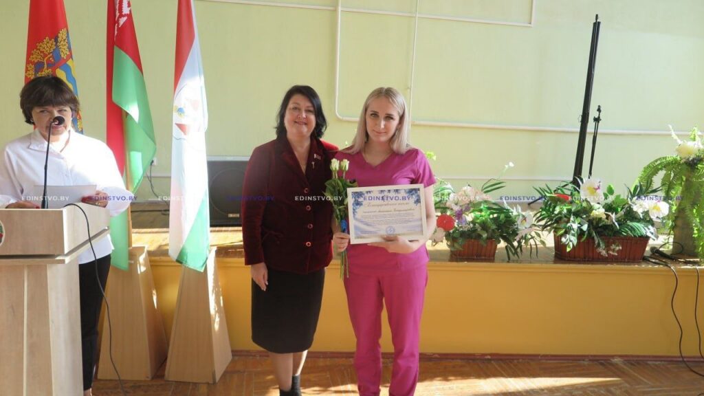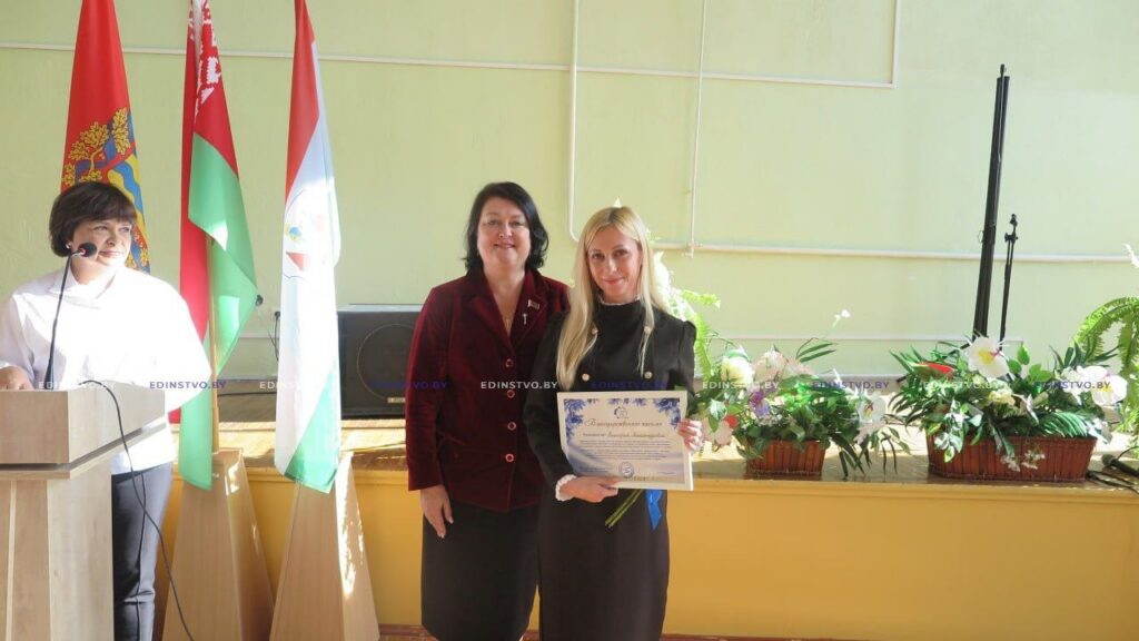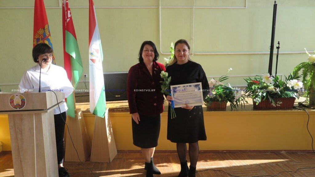Многие женщины совмещают материнство не только с работой, но и общественной деятельностью. Их поздравила с праздником и вручила благодарности от районной организации ОО «Белорусский союз женщин» ее председатель Ольга Городецкая.