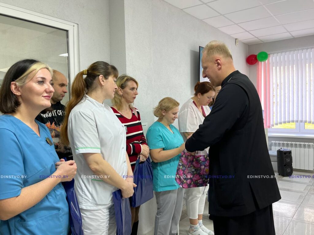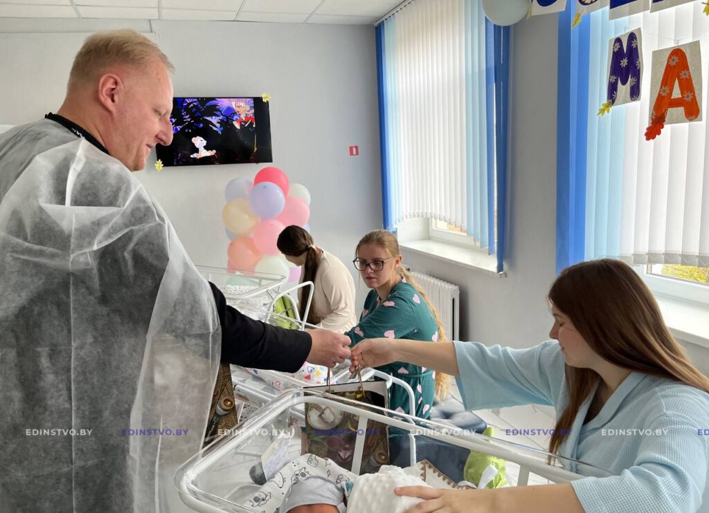 Сегодня в Борисовском родильном доме в рамках Недели родительской любви прошла теплая акция – поздравления принимали мамы малышей, появившихся на свет в День матери. С благородной миссией в родильный дом прибыли почетные гости: заместителя председателя Борисовского райисполкома Егор Мандрик, начальник отдела идеологической работы и по делам молодежи райисполкома Татьяна Чуйкова, председатель Минской областной организации Белорусского профсоюза работников здравоохранения Ольга Катова, настоятель храма Дмитрия Донского Сергий Башкиров.