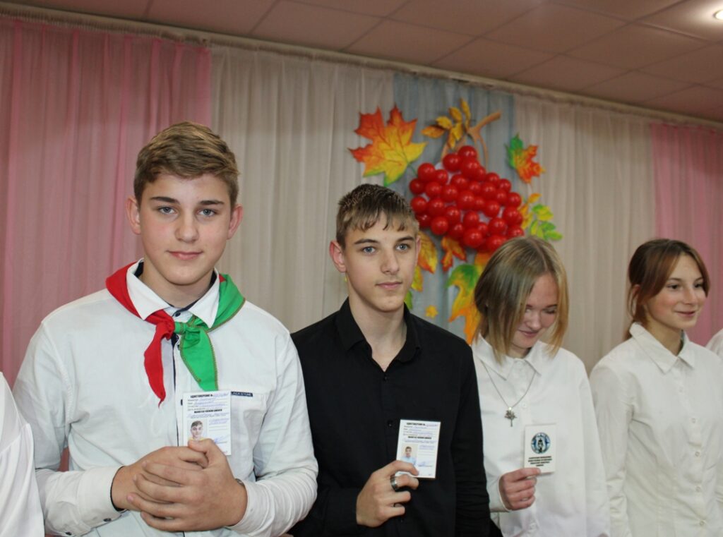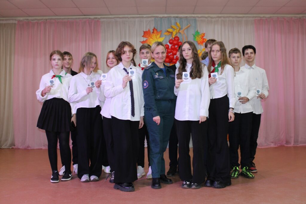 После прошла церемония вступления учащихся в ряды Белорусской молодежной общественной организации спасателей-пожарных с получением соответствующих удостоверений.
