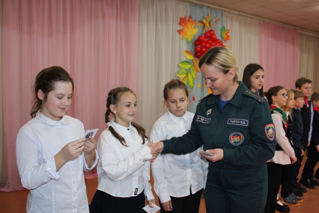После прошла церемония вступления учащихся в ряды Белорусской молодежной общественной организации спасателей-пожарных с получением соответствующих удостоверений.