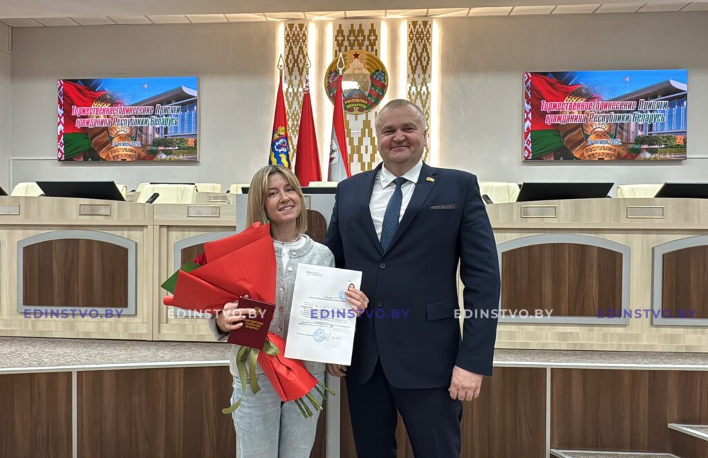 Наряду с получением гражданства каждому участнику церемонии вручена Конституция Республики Беларусь и цветы.