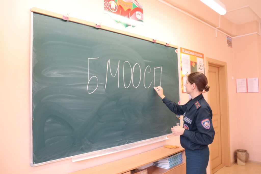 В рамках республиканской акции «Молодежь за безопасность» в средней школе №25 г. Борисова состоялась диалоговая площадка с участием старшего инспектора сектора пропаганды и взаимодействия с общественностью Миланы Сташкевич, начальника дежурной смены Никиты Соловьева и активистов БМООСП.