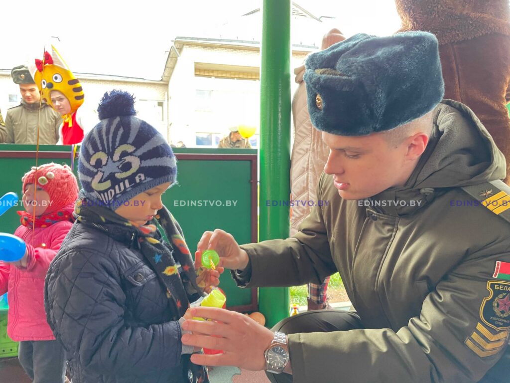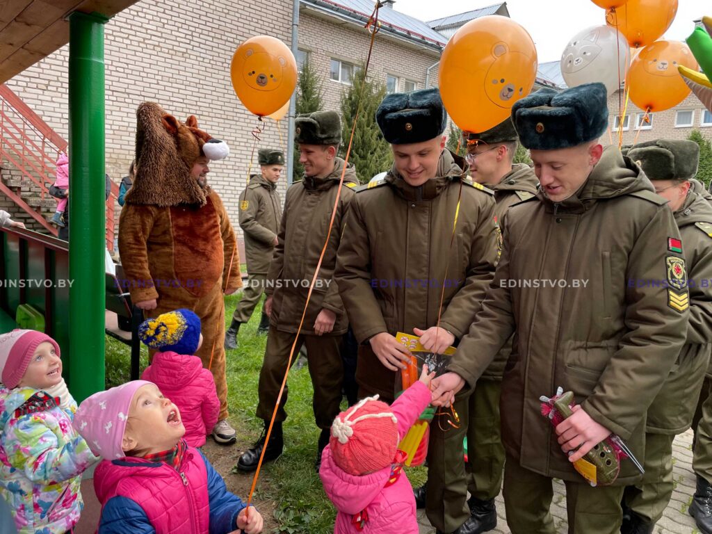 В октябре-ноябре в Беларуси проходит увольнение в запас солдат-срочников, которые завершают службу по призыву. Пару лет назад представители воинской части положили начало доброй традиции, которую поддержал ее командир Сергей Пашек. Они устраивают настоящий праздник для воспитанников Борисовского специализированного дома ребенка, приезжают к ним в гости с подарками и в хорошем настроении. Таким образом, завершают на приятной нотке службу в армии. Поддержали доброе дело и представители Центра творчества детей и молодежи Борисовского района.