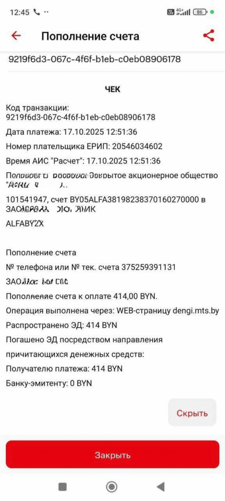 Сотрудниками отделения по противодействию киберпреступности Борисовского РУВД установлено, что звонивший в мессенджере якобы сотрудник компании «МТС» предложил женщине перезаключить договор. Ехать для этого никуда не нужно – всего лишь следует перейти по ссылке и скачать приложение, позволяющее получить удаленный доступ к телефону.