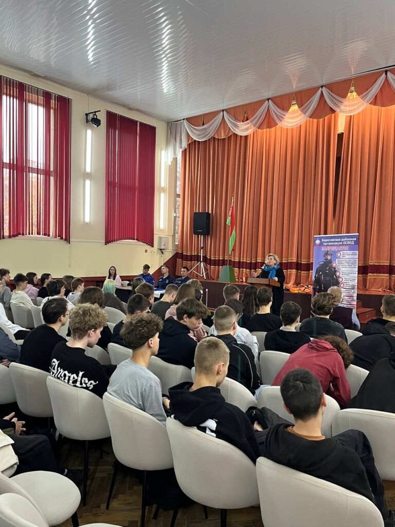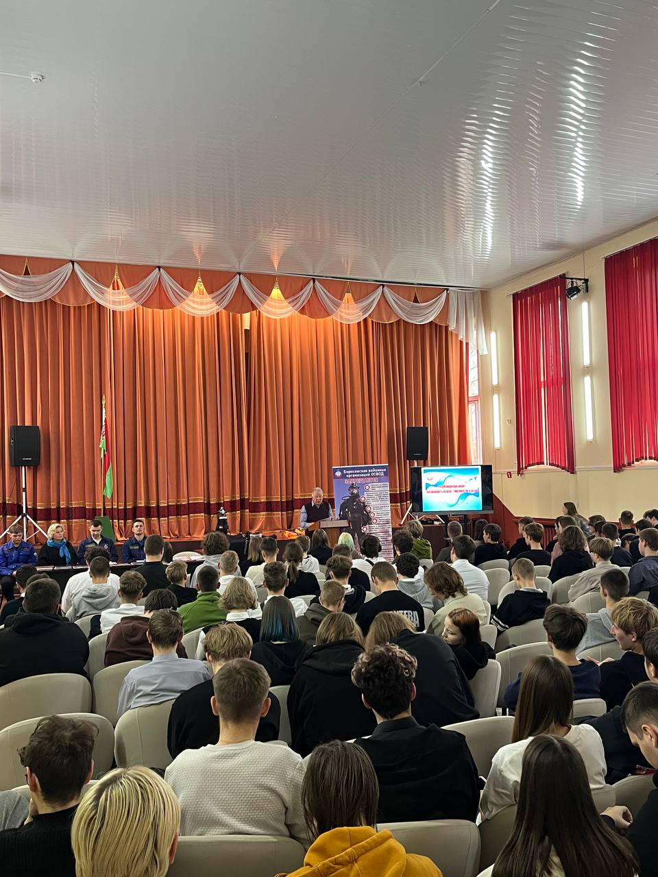 Перед учащимися первого и второго курсов выступил начальник Борисовской спасательной станции Евгений Михнюк. Он поделился примерами из своей практики, рассказал о сложной и ответственной работе водолазов и матросов-спасателей. Матрос-спасатель Дмитрий Казак продемонстрировал присутствующим спасательное и водолазное оборудование, объяснил его назначение и принципы работы.