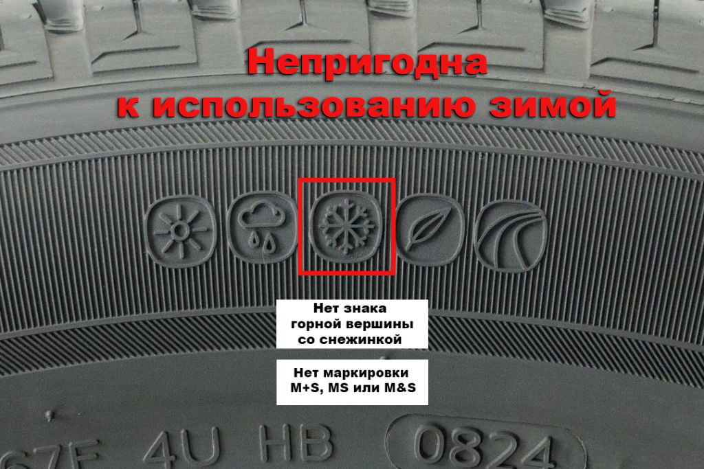 Если на маркировке нанесены эти ОБА ЗНАКА, такие шины считаются зимними, в том числе при наличии любых дополнительных обозначений (+ All Season; Road+Winter (R+W); Any Weather и др.)