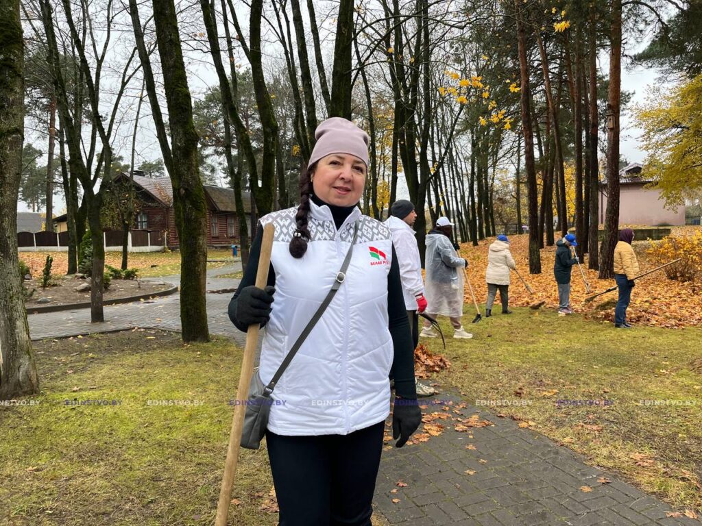 – Сегодня замечательный день! Я пришла сюда с большим удовольствием, ведь это замечательная возможность не только сделать зарядку и провести время на свежем воздухе, но и пообщаться с хорошими людьми и своими единомышленниками. Я считаю, что каждый белорус должен внести свой вклад в общее дело – сделать хоть что-то полезное для своей страны. Пусть это будет даже небольшая помощь, например, уборка листьев. Зато потом можно с гордостью смотреть на результат, наслаждаться чистотой и красотой, к созданию которой ты приложил руки, и радоваться, что сделал доброе дело для своей малой родины, – делится директор Борисовского центра экологии и туризма Екатерина Ракицкая.