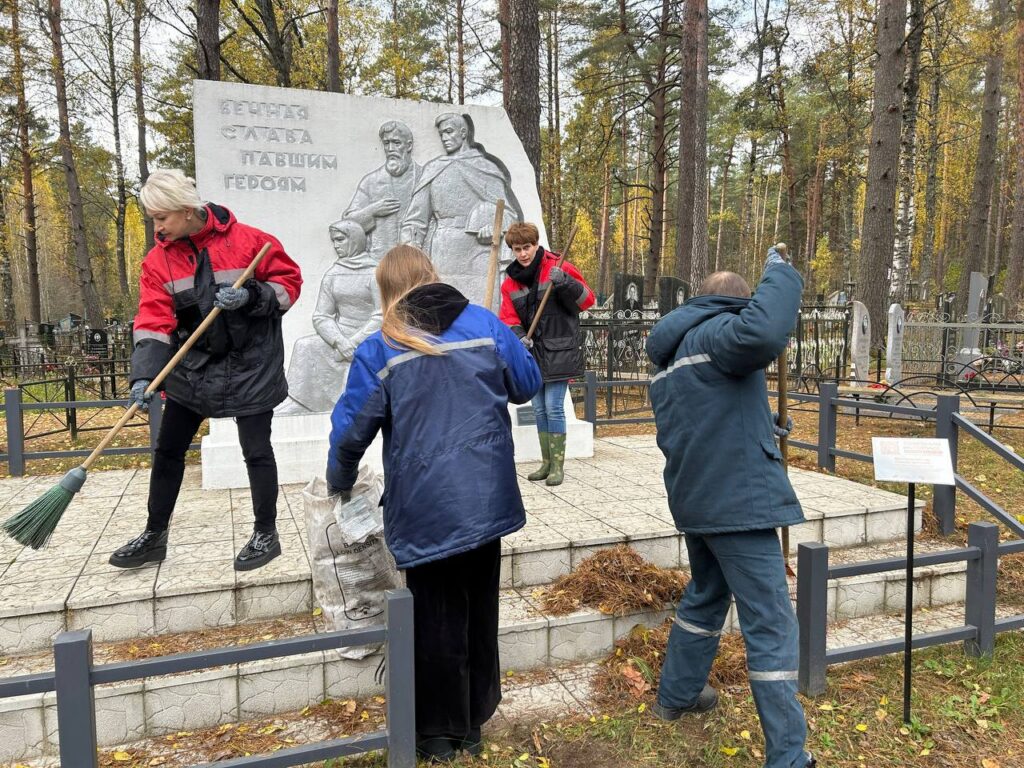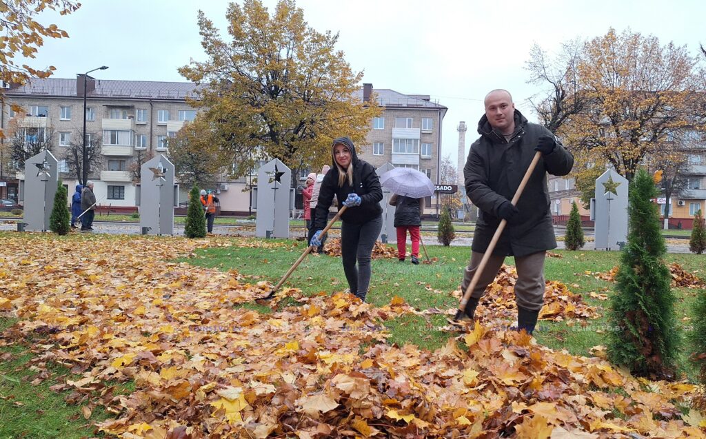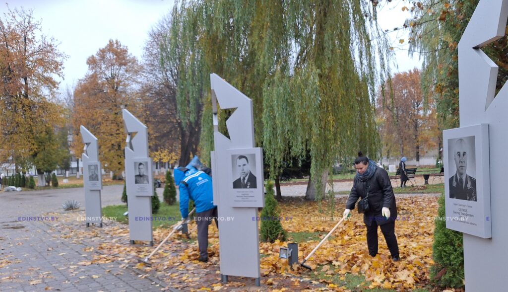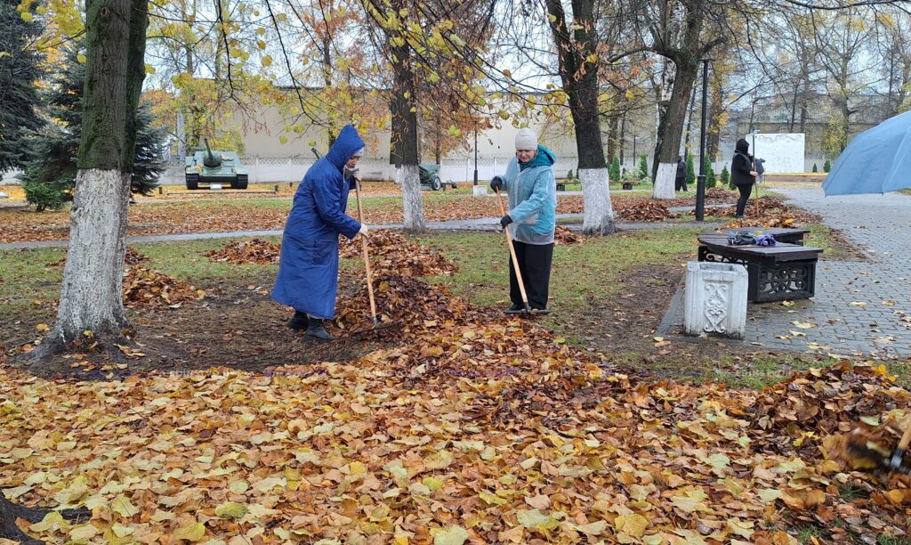Многие трудовые коллективы сегодня трудились у своих зданий, на памятных местах — наводили чистоту, порядок.