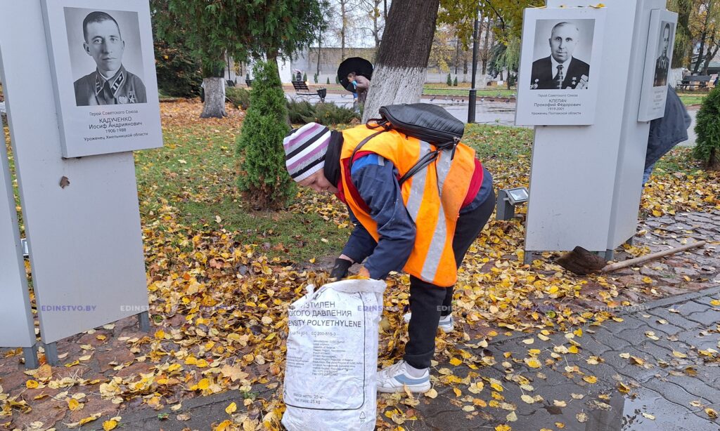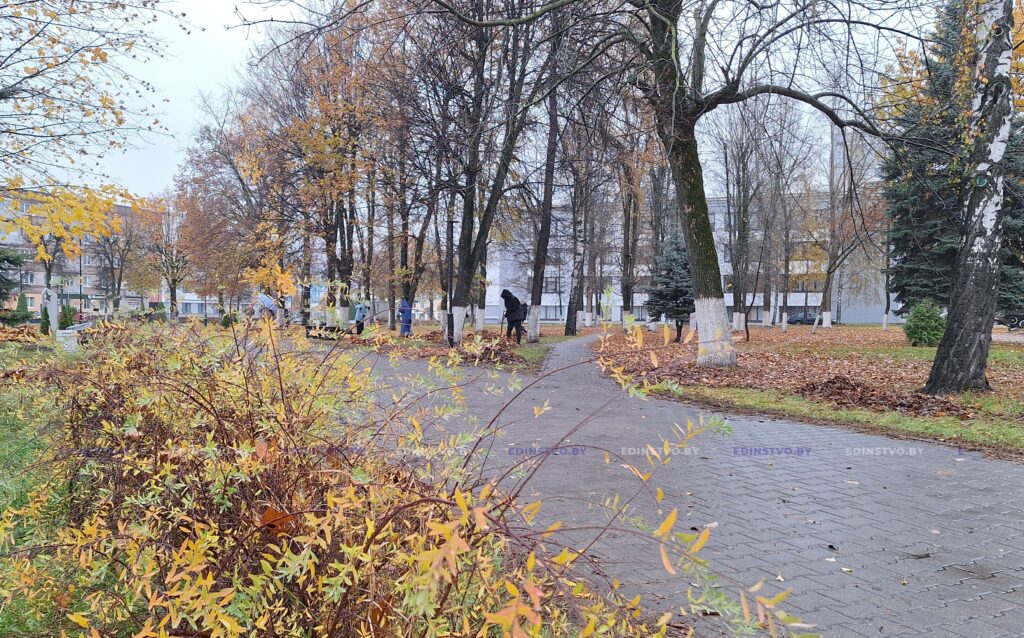 Республиканский субботник сегодня проходит в различных уголках Борисовщины. В сквере у памятника «Жертвам фашизма» на Чапаева уборкой опавшей листвы занимались работники служб и отделов Борисовского райисполкома, УП «Жилье».