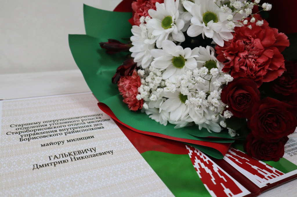 Сегодня в стенах Борисовского РУВД состоялось торжественное мероприятие, посвященное выходу на пенсию майора милиции Дмитрия Николаевича Галькевич, старшего оперуполномоченного отделения уголовного розыска Староборисовского отдела милиции управления внутренних дел Борисовского райисполкома.