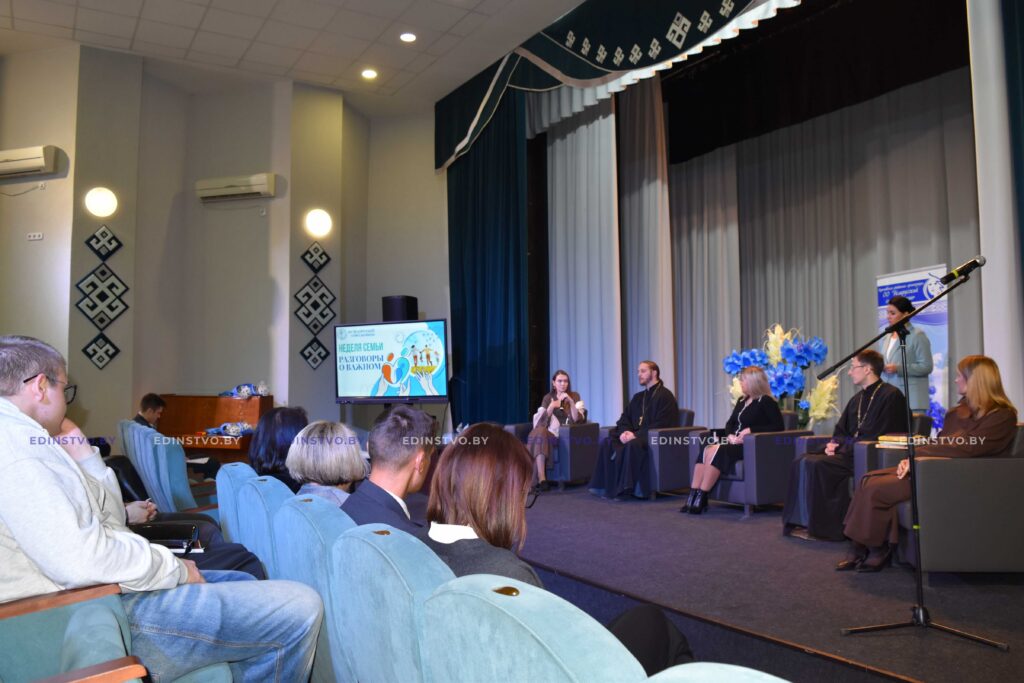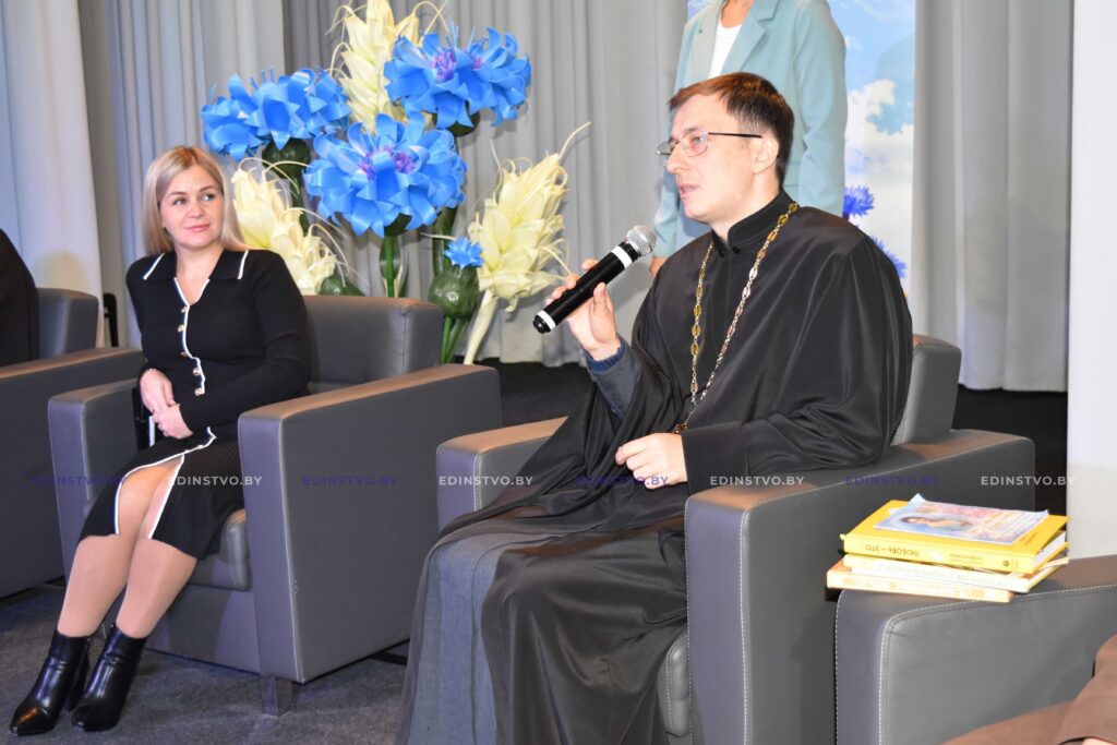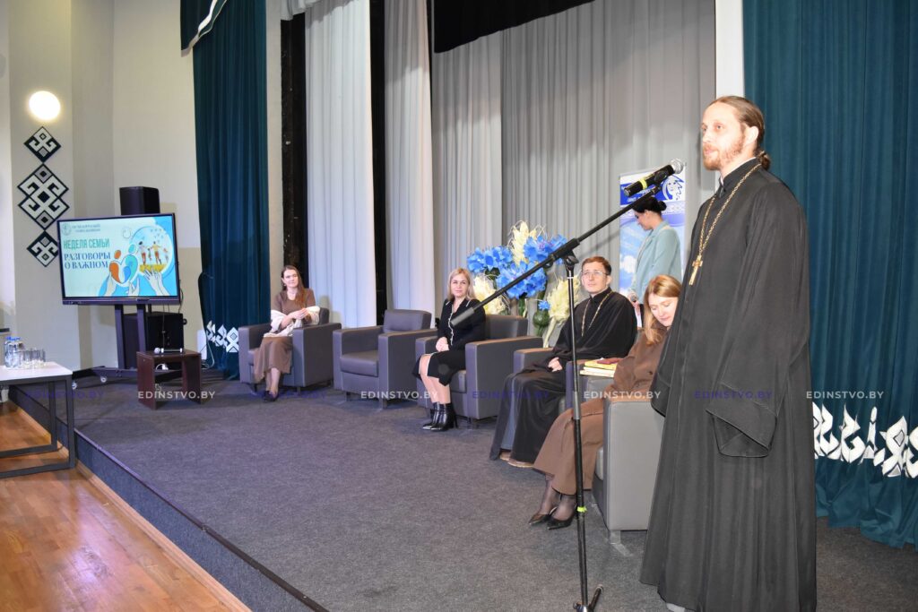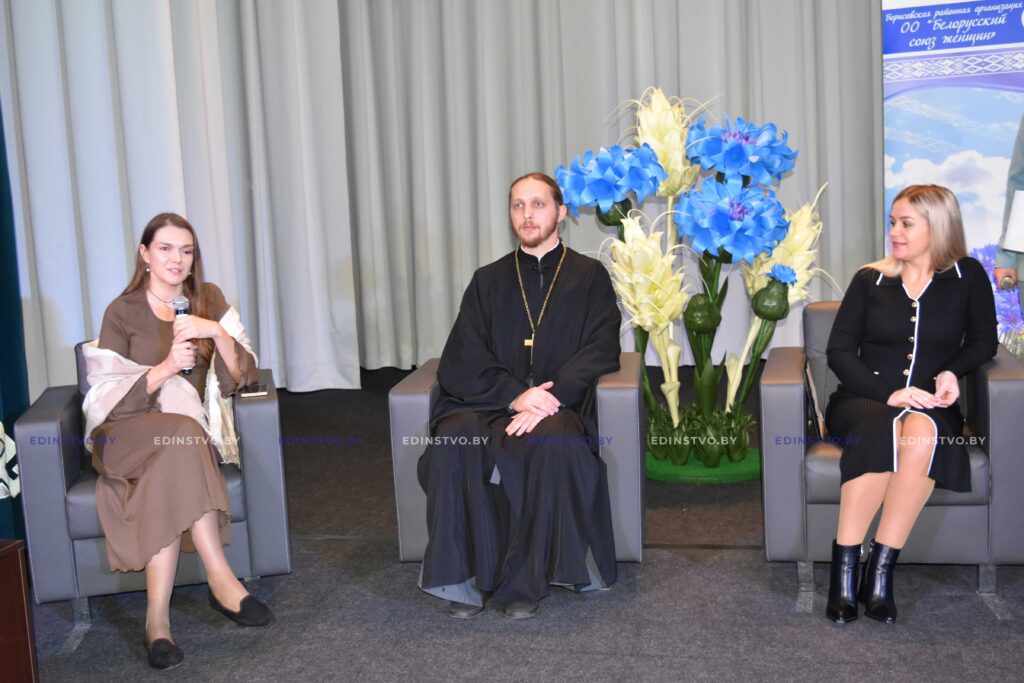 В своих выступлениях Артемий Щербицкий и Виктор Шабловский сделали акцент на христианском понимании семьи и брака. Многодетные мамы Наталья Шабловская и Мария Юткевич рассказали о важности и способах сохранения семейных ценностей. А участница различных семейных конкурсов Екатерина Касперская поделилась секретами семейного счастья. В частности, рассказала про участие в областном конкурсе патриотических семей. Беседа оставила глубокое впечатление.