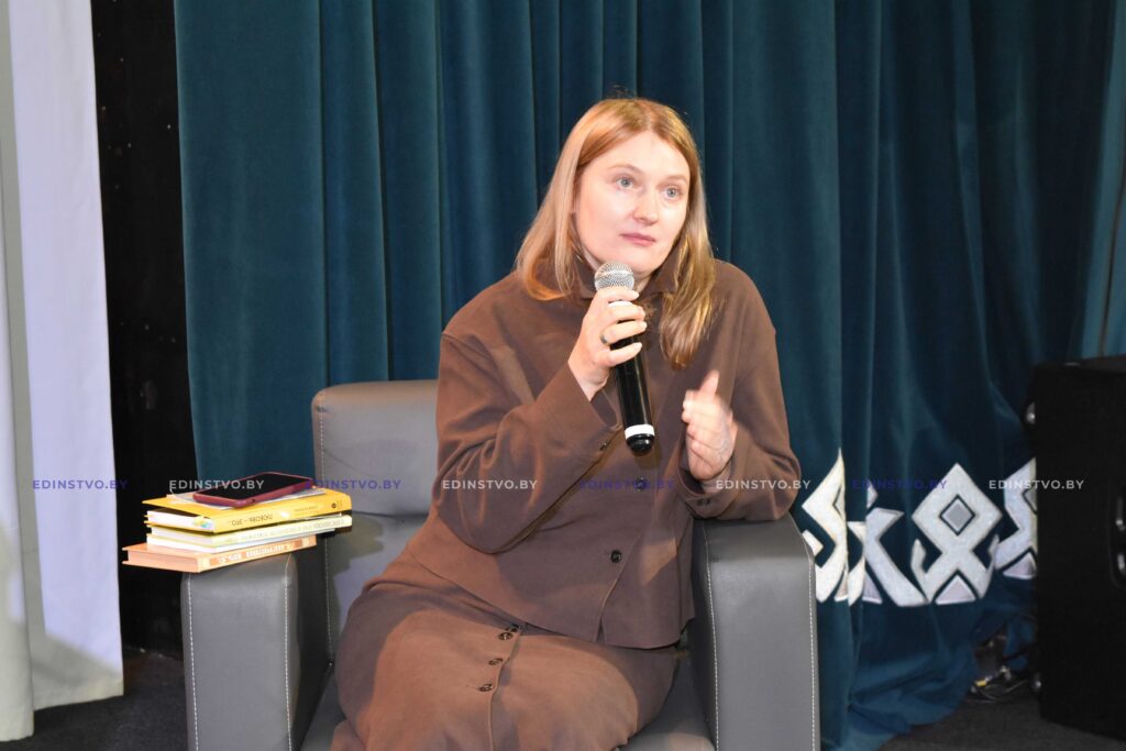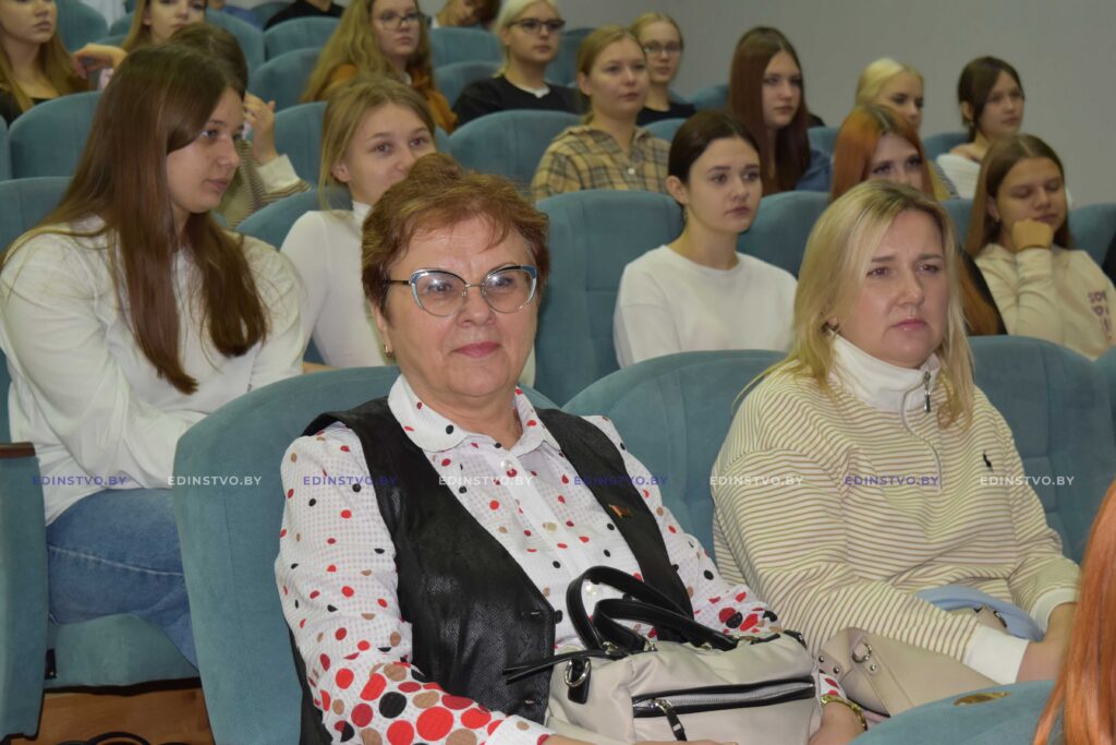 – Инициатором сегодняшней встречи является «Белорусский союз женщин». Проводя Неделю семьи, мы по традиции организовываем встречи с вами: с молодыми людьми, с молодым поколением белорусов. И говорим о важном: о важности сохранения семейных традиций, о передаче традиционных семейных ценностей из поколения в поколение, о важности гармоничных отношений в семье, о роли женщины в сохранении целостности и гармоничном развитии семьи, – отметила Ольга Городецкая. – Хочется сделать акцент на морально-нравственной составляющей современных семейных отношений. Мы живем в стремительный век, и очень важно в этом потоке изменений, угроз, которые испытывает наше общество, не растерять те фундаментальные ориентиры, которые на протяжении веков являлись основой крепкого белорусского общества. Нужно помнить, что только своим личным участием и личным вкладом мы можем сохранить стабильность нашего белорусского общества за счет сохранения семьи и традиционных семейных ценностей.