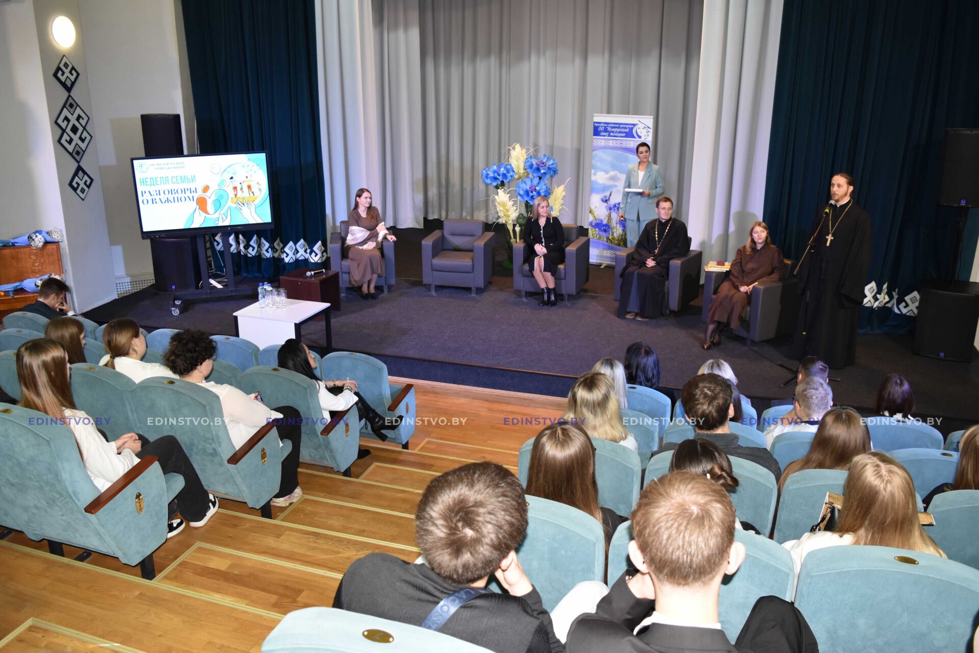 В своих выступлениях Артемий Щербицкий и Виктор Шабловский сделали акцент на христианском понимании семьи и брака. Многодетные мамы Наталья Шабловская и Мария Юткевич рассказали о важности и способах сохранения семейных ценностей. А участница различных семейных конкурсов Екатерина Касперская поделилась секретами семейного счастья. В частности, рассказала про участие в областном конкурсе патриотических семей. Беседа оставила глубокое впечатление.