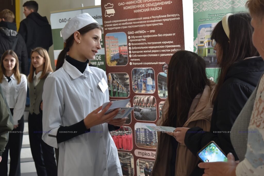 Присмотреться к будущей профессии сегодня смогли около 200 человек. Это учащиеся выпускных курсов учреждений образования, реализующих образовательные программы профессионально-технического и среднего специального образования, а также учащиеся выпускных классов учреждений общего среднего образования Борисовского, Смолевичского районов и г. Жодино.