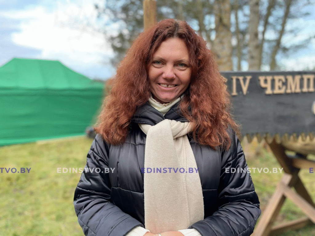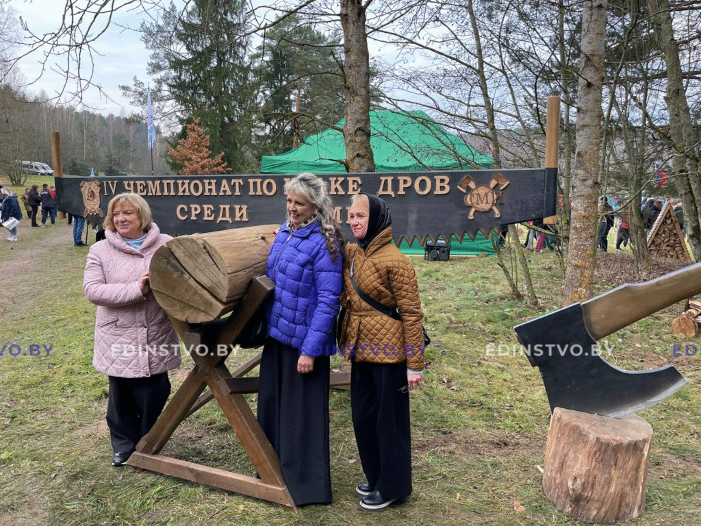 Директор Борисовского центра экологии и туризма Екатерина Ракицкая – в составе делегации Борисовского района на Чемпионате по колке дров среди СМИ.