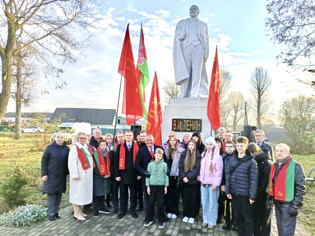 У памятника В.И. Ленина в аг. Старо-Борисов, отреставрированному благодаря инициативе и активному участию членов районной организации КПБ, собрались местные жители, коммунисты и школьники. Присутствующим на церемонии напомнили о месте и значении Октябрьской революции как в мировой, так и истории нашей страны. К подножию памятника были возложены красные гвоздики.
