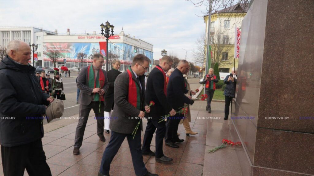 В Борисове же в честь 108-й годовщины Октябрьской революции прошла церемония возложения цветов у памятника В.И. Ленину на центральной площади города.