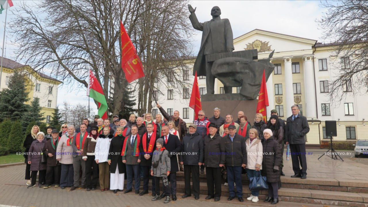 В Борисове же в честь 108-й годовщины Октябрьской революции прошла церемония возложения цветов у памятника В.И. Ленину на центральной площади города.
