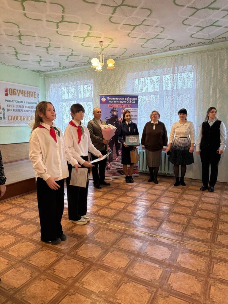 Председатель Борисовской районной организации ОСВОД Надежда Великохатько отметила, что учащиеся Неманицкой средней школы активно участвуют во всех мероприятиях и конкурсах, проводимых организацией.