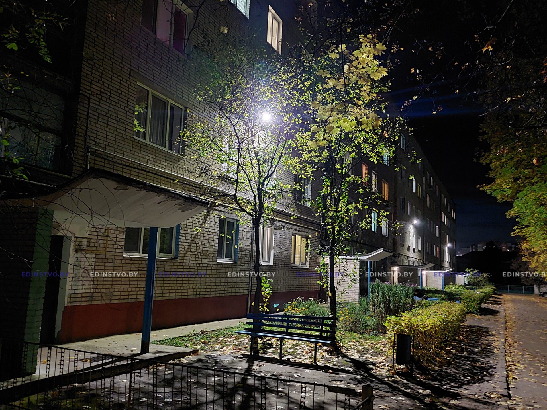 Николай Николаевич поручил УП «Жилье» решить вопрос с освещением данной придомовой территории. Что и было сделано. Разработан и реализован проект по установке светильников на фасадах зданий. Они размещены между вторым и третьим этажами домов. Кроме того, обновлено освещение и над входом в подъезды.