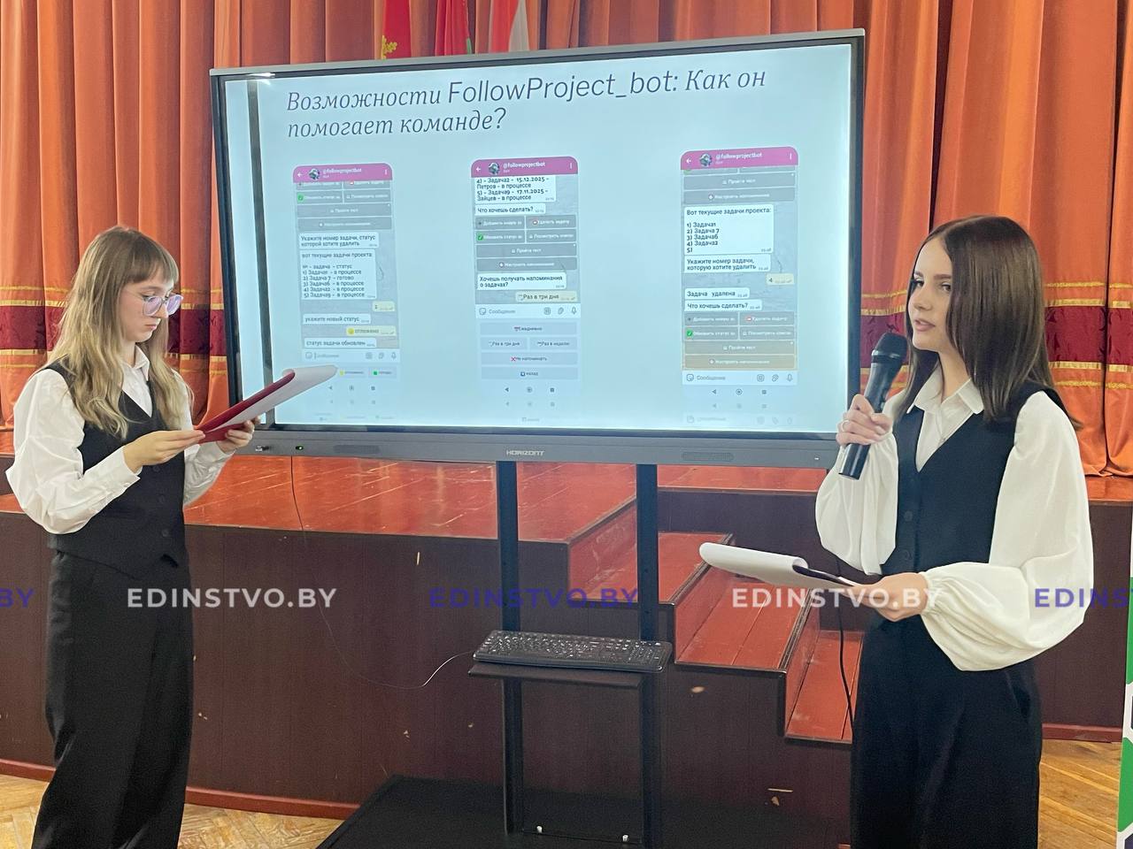 Интересных идей на презентации было немало. Так, например, одна из команд разработала проект, который способствует развитию творческих и коммуникативных навыков у молодежи, – «Коммуникация будущего: как развить эффективное взаимодействие в команде». Ребята презентовали сервисы, используемые для организации взаимодействия в команде, бот для отслеживания задач проекта, компьютерный тест «Твоя роль в команде», игру для развития коллективного мышления. Другие участники создали проект для завода по производству бетона. Среди представленных идей также приложение для транспорта, банковская карта-наклейка и др.