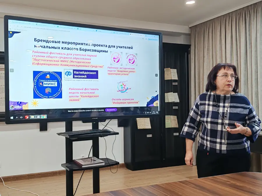 Также с докладом выступила Ольга Угляница, замдиректора СШ №10 г. Борисова, презентовала опыт районного ресурсного центра «Методический МАЯК». Его главная задача – помочь педагогам перейти от единичных удачных уроков к созданию целой системы профессионального роста.