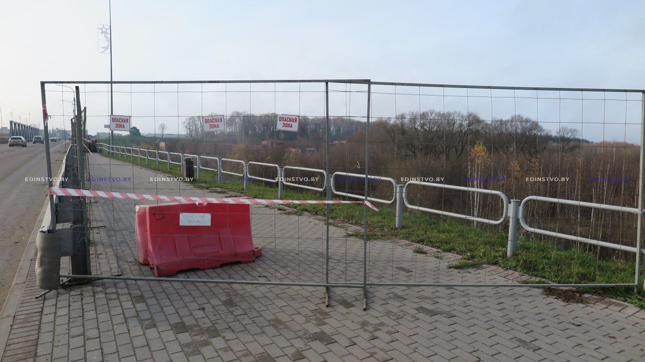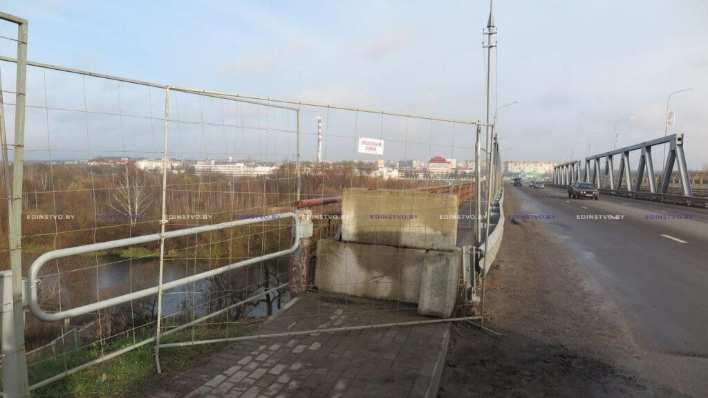 Как сообщил корреспонденту «Адзінства» представитель подрядной организации, завершается установка временного ограждения места проведения работ, затем будет проведен демонтаж старых и установка новых конструктивных элементов ограждения моста.