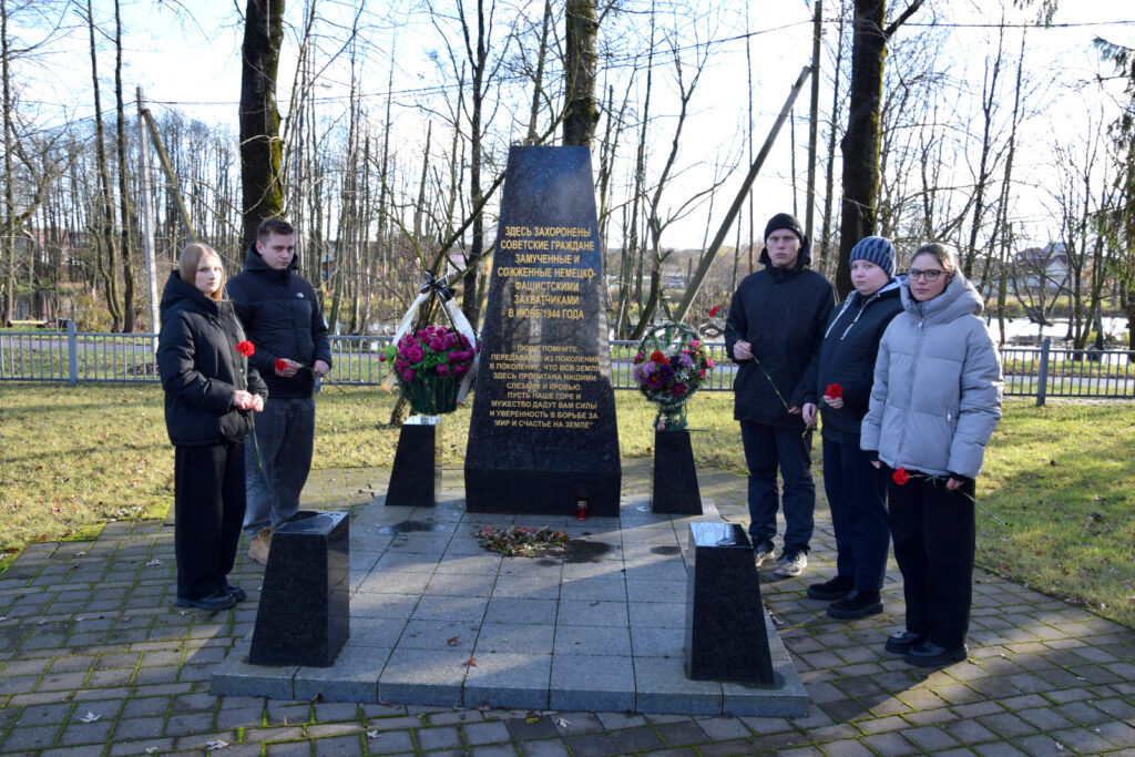 Отдавая дань памяти жертвам геноцида белорусского народа в годы Великой Отечественной войны ребята возложили цветы к монументу «Врата памяти», символизирующему ворота в вечную память о жертвах лагерей смерти, а также к памятному знаку, воздвигнутому на месте, где были убиты и сожжены последние мирные жители соседней деревни.