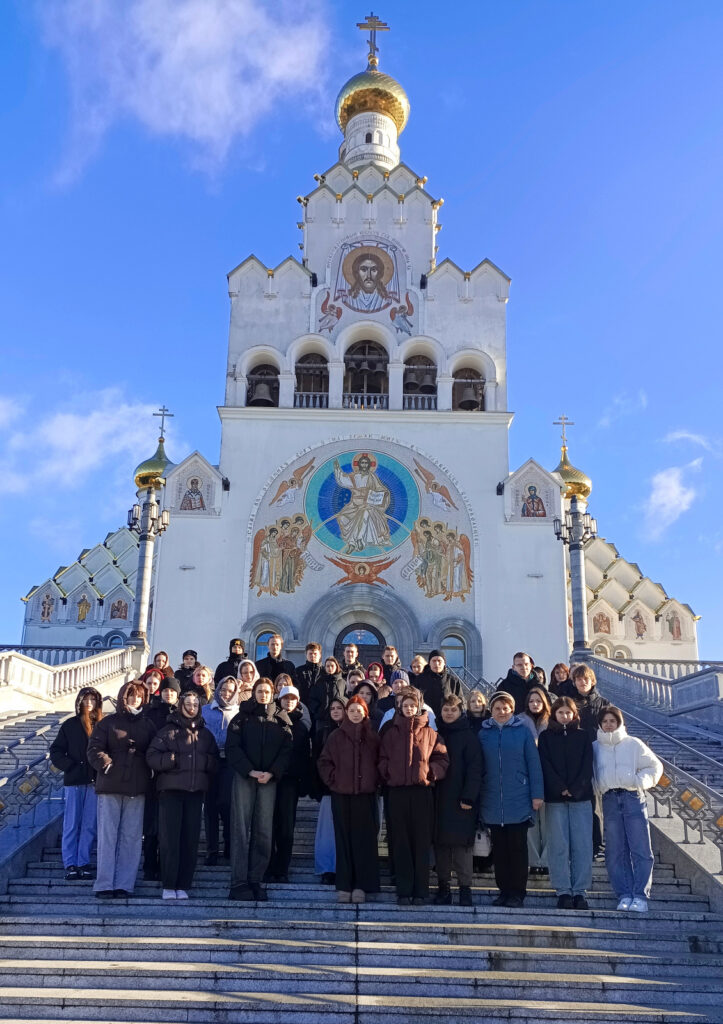 Далее маршрут следовал в Храм Всех Святых – один из самых значимых современных православных храмов Беларуси, ставший символом памяти обо всех безвинно убиенных и павших за Отечество. Этот величественный храм входит в состав мемориального комплекса, посвященного национальной истории и духовному возрождению страны.