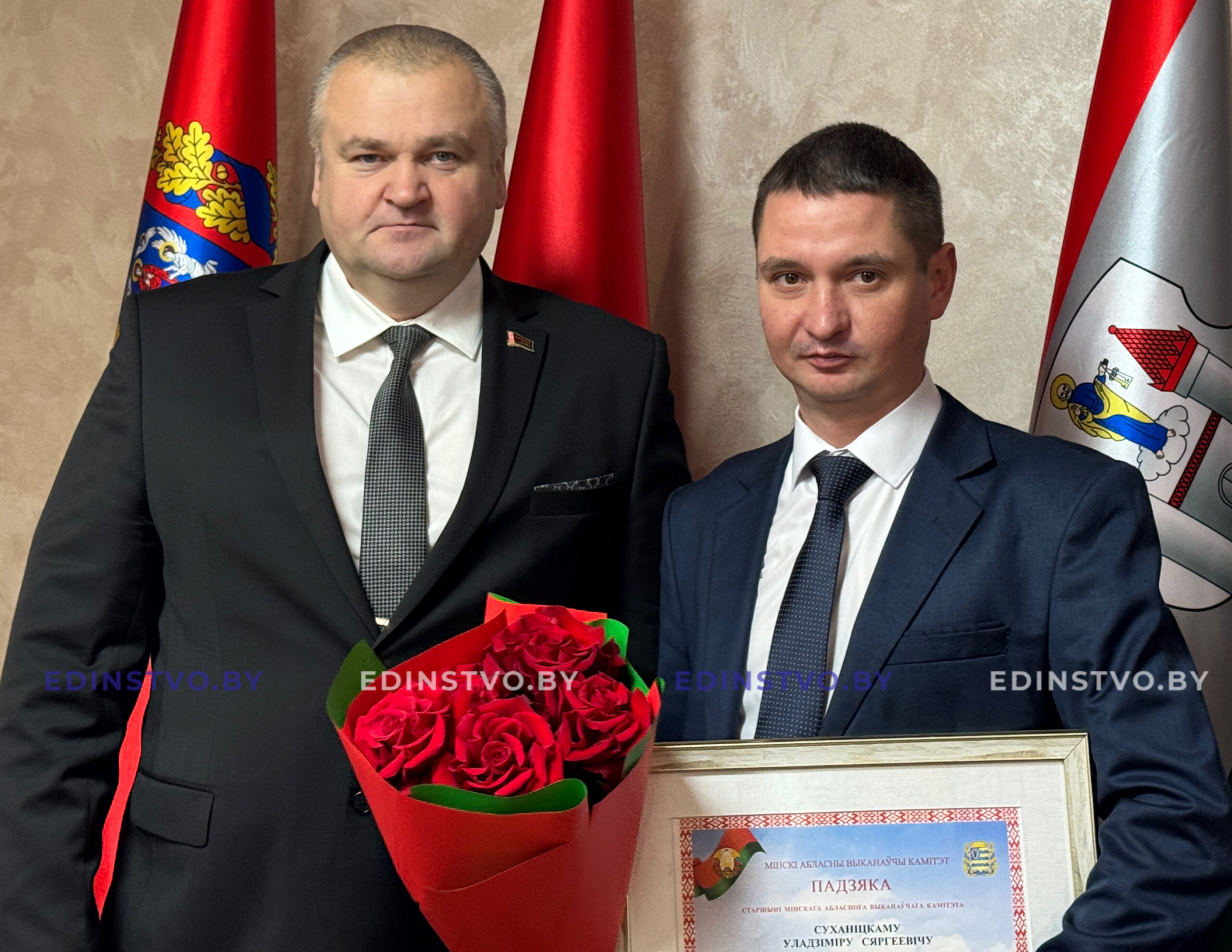 За мужество, решимость, и умелые действия, проявленные при спасении людей во время пожара Благодарность председателя Минского областного исполнительного комитета объявляется подполковнику Евгению Маслиевичу, командиру кадра понтонно-мостового батальона инженерного полка Северо-западного оперативного командования Вооруженных Сил Республики Беларусь и заместителю начальника по содержанию филиала коммунального унитарного предприятия «Минскоблдорстрой»-«ДРСУ №122» Владимиру Сухоницкому (на главном фото).