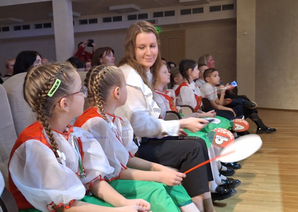Под аплодисменты на сцену были приглашены герои выставки — Варвара Анкудинова, Александра Гончарик, Алена Гурецкая, Златослава Захарова, Олег Маликов, Артур Наумик, Артём Неверовский, Алексей Сахаров, Александра Юхневич и их родители. Ребята не ушли без сюрприза: на память им был подарен портрет, точно такой же, как и на выставке, и памятный подарок.