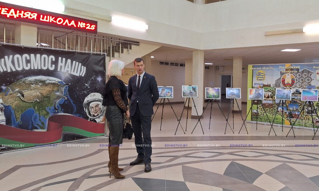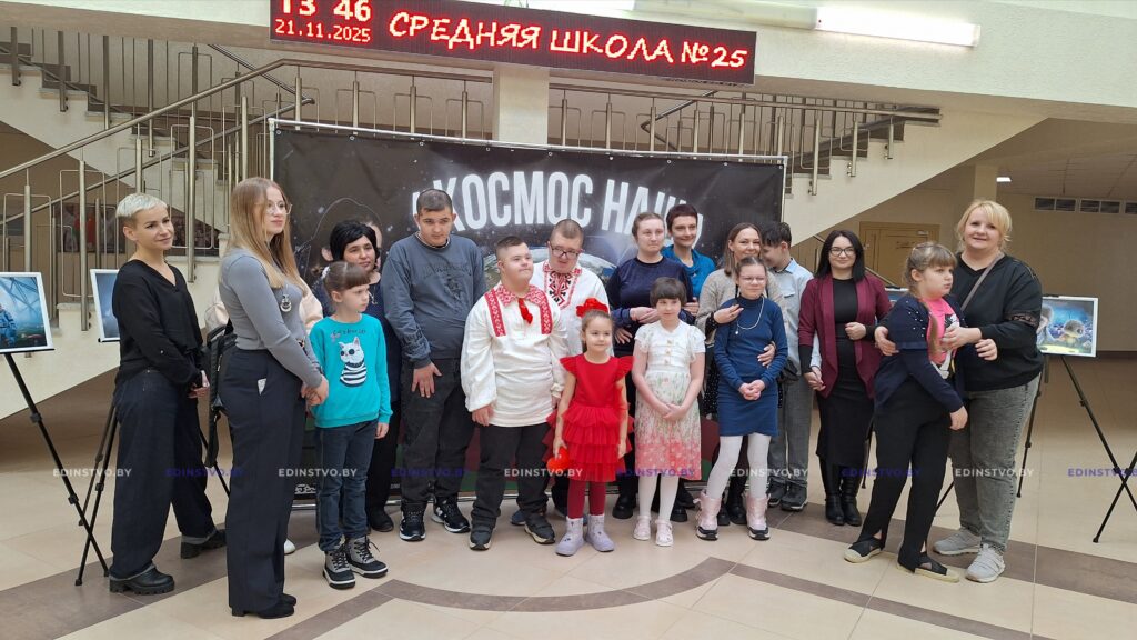 Удивительно теплое, трогательное мероприятие состоялось сегодня в Борисове: в рамках областного профсоюзного проекта «Кадры счастья» в стенах школы №25 прошла церемония открытия фотовыставки под названием «Космос – наш».
