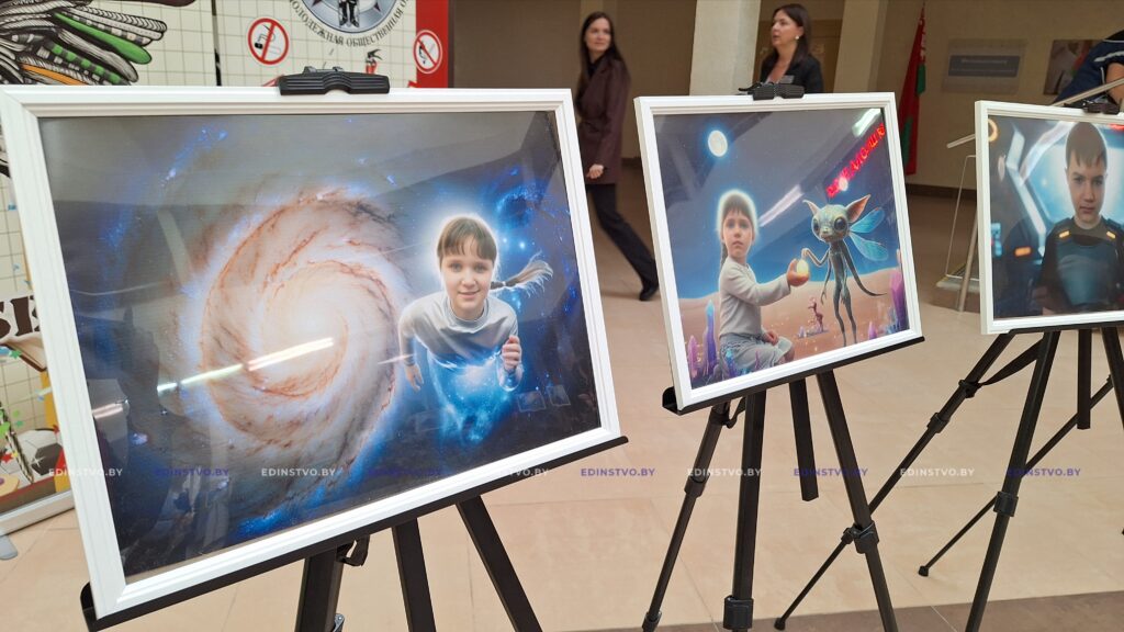 На представленных 20 снимках — девять воспитанников Борисовского ЦКРОиР, которые приняли участие в проекте. И благодаря креативным взрослым и искусственному интеллекту словно оказались на другой планете, в космосе, на орбите.