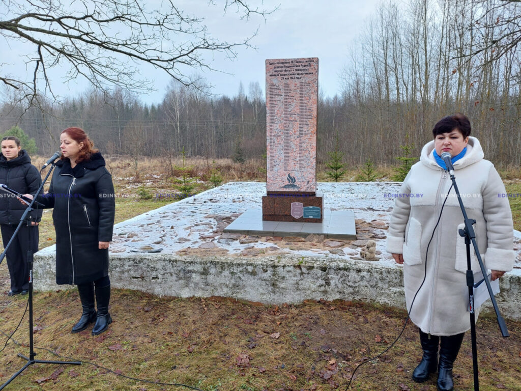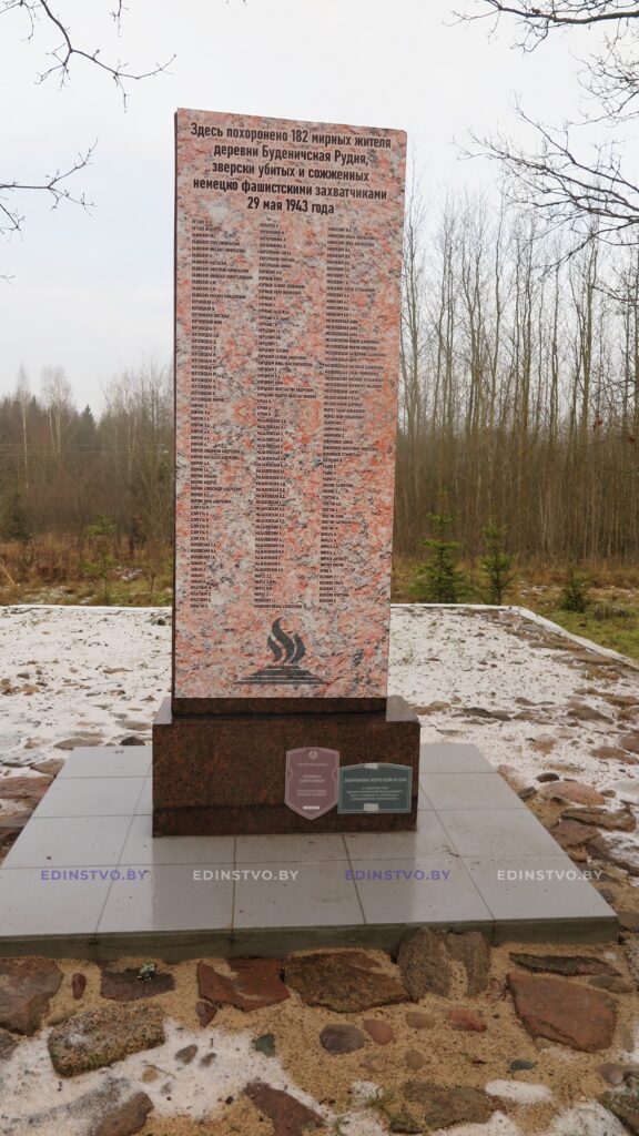 На окраине д. Буденичская Рудня в 1981 году была установлена стела в память о местных жителях, убитых и сожженных карателями 29 мая 1943 года. На ней не было ни имен, ни фамилий тех, кто пал от рук оккупантов, лишь дата страшной расправы и количество погибших. Сегодня, 21 ноября 2025 года, благодаря Борисовской районной организации ОО «Белорусский фонд мира», увековечена память 182 мирных жителей.